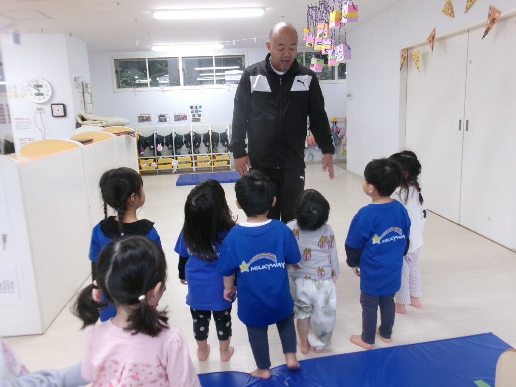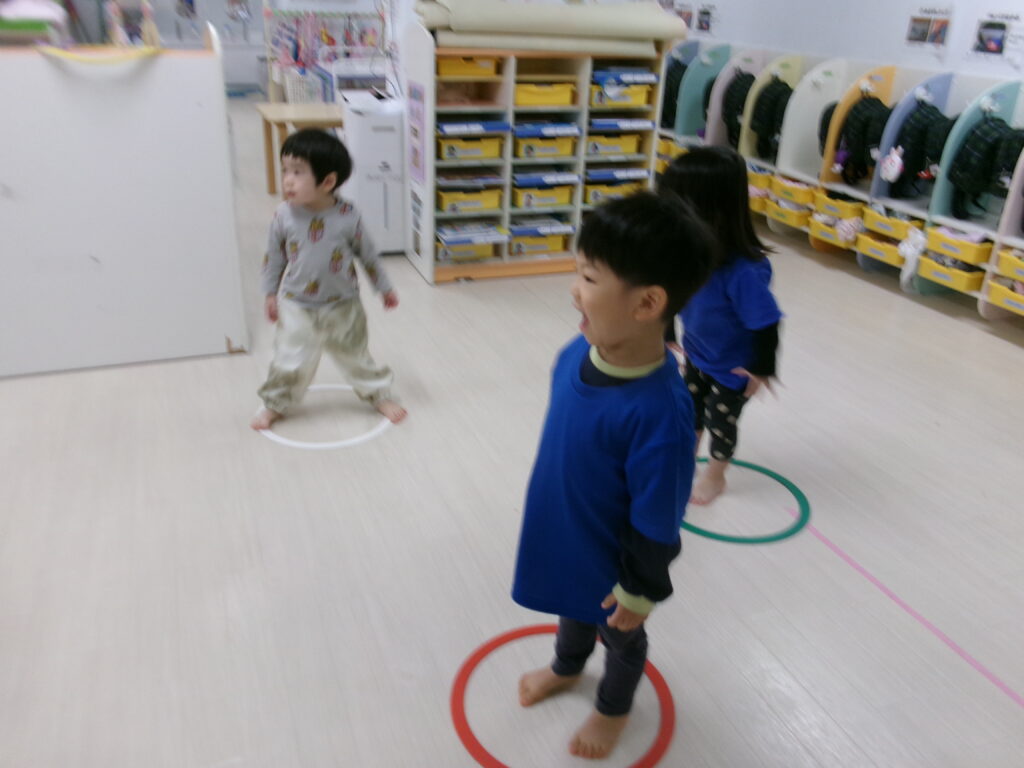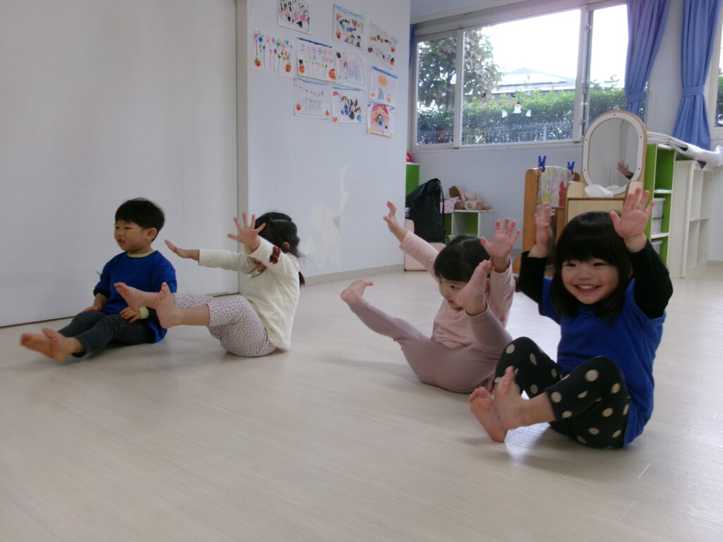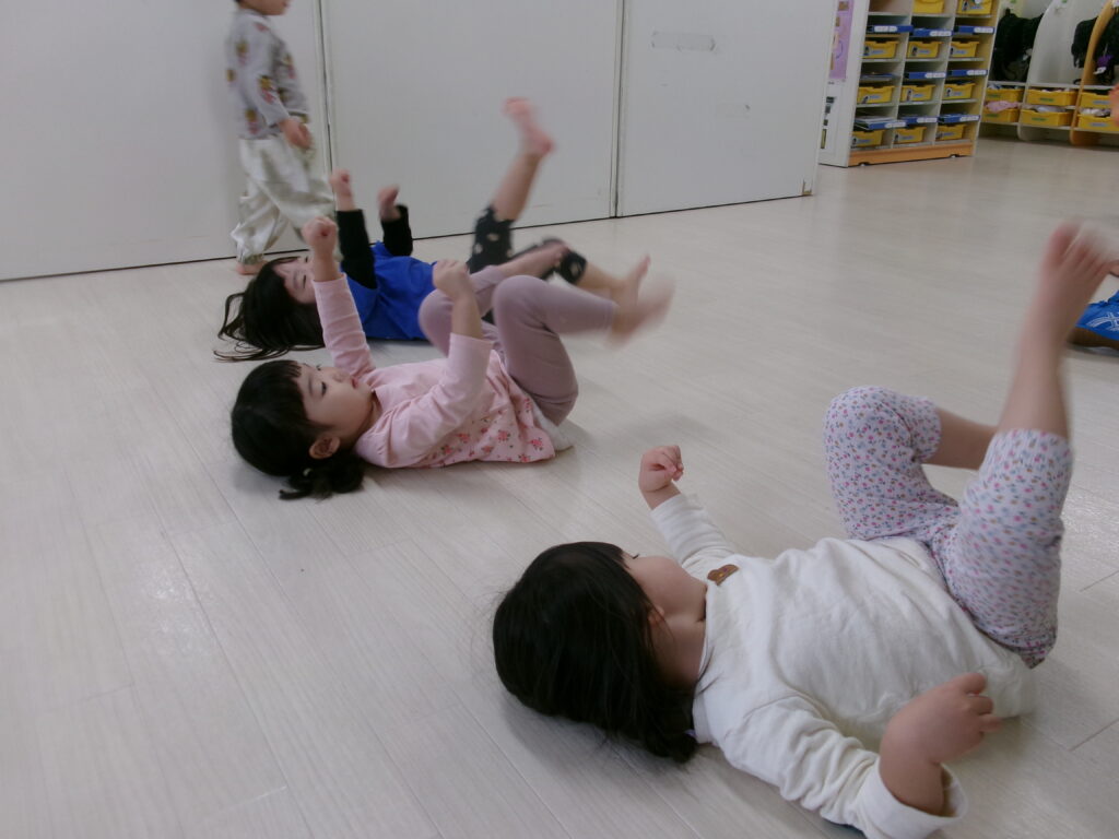 月に一度の体操遊びをとても楽しみにしているうさぎ組さん。