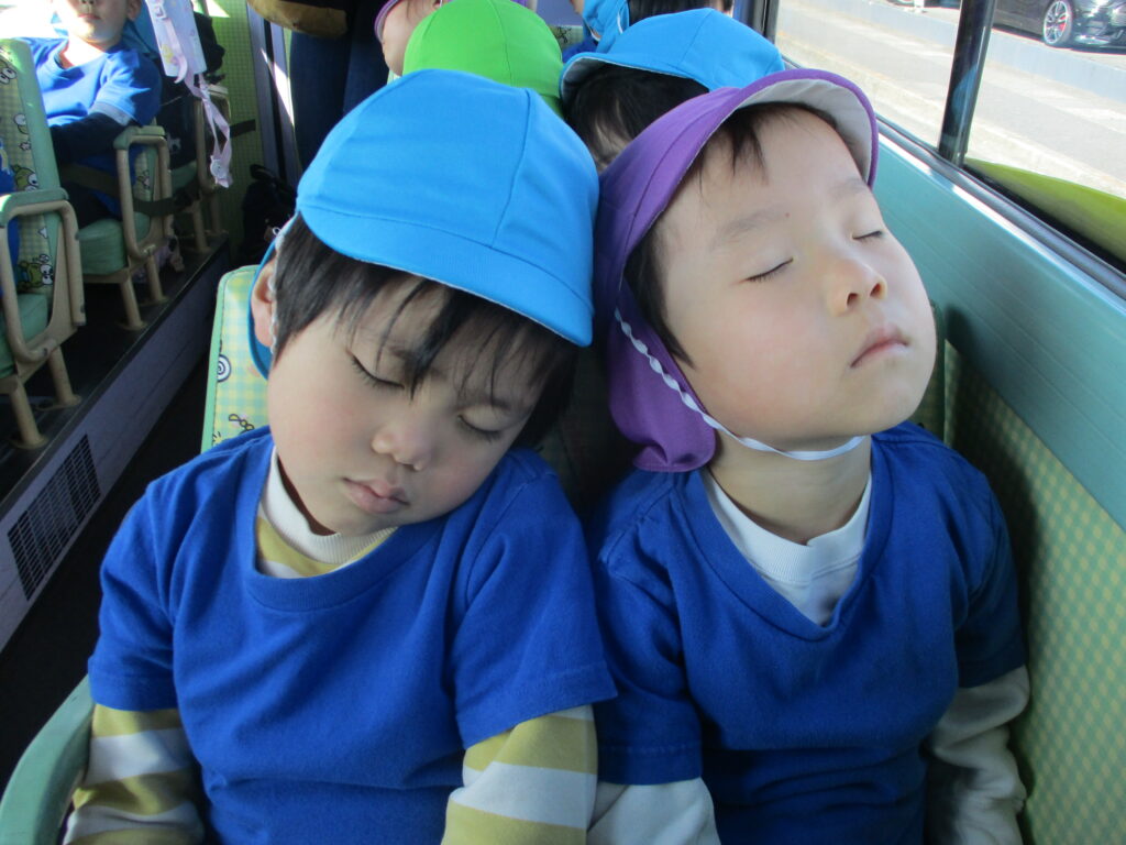 たくさん遊んで、たくさん食べたあとの帰りのバスは、すやすやと気持ちよさそうに寝ている子もいました。