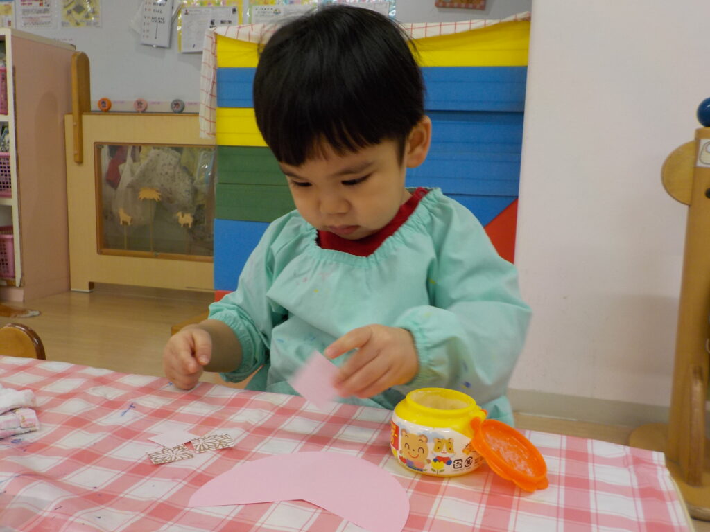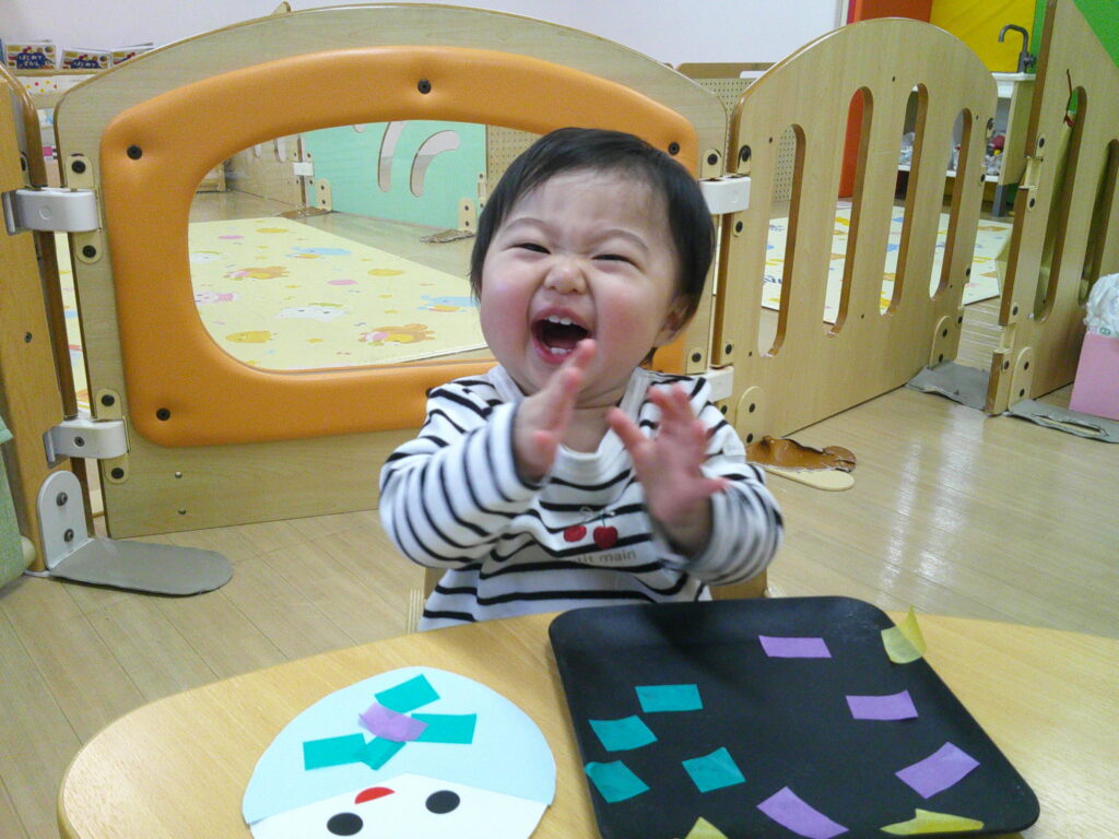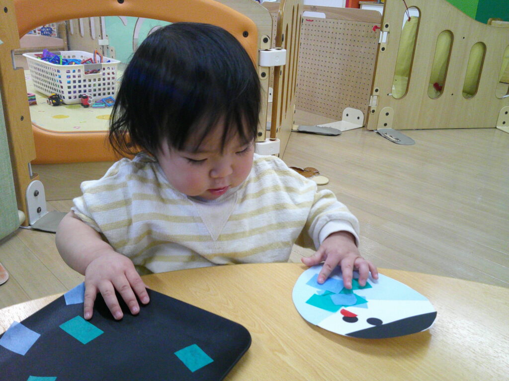 真剣な表情でテープを剥がしたり、貼ったり、、、「出来た!」の嬉しそうな表情が微笑ましいです。