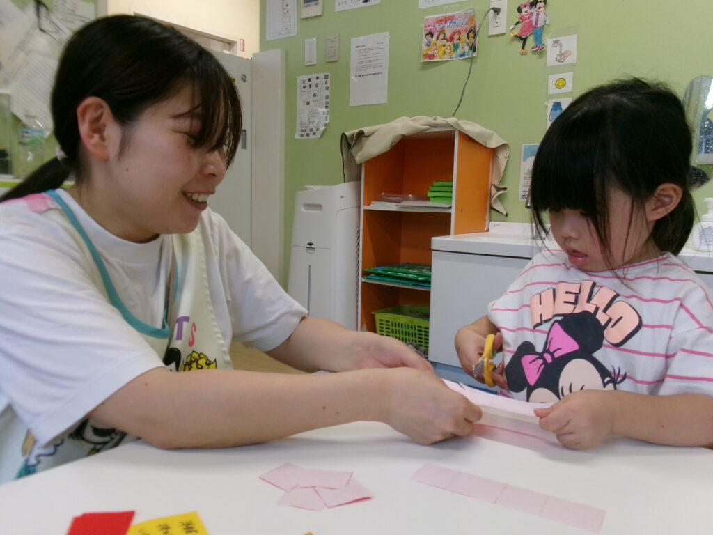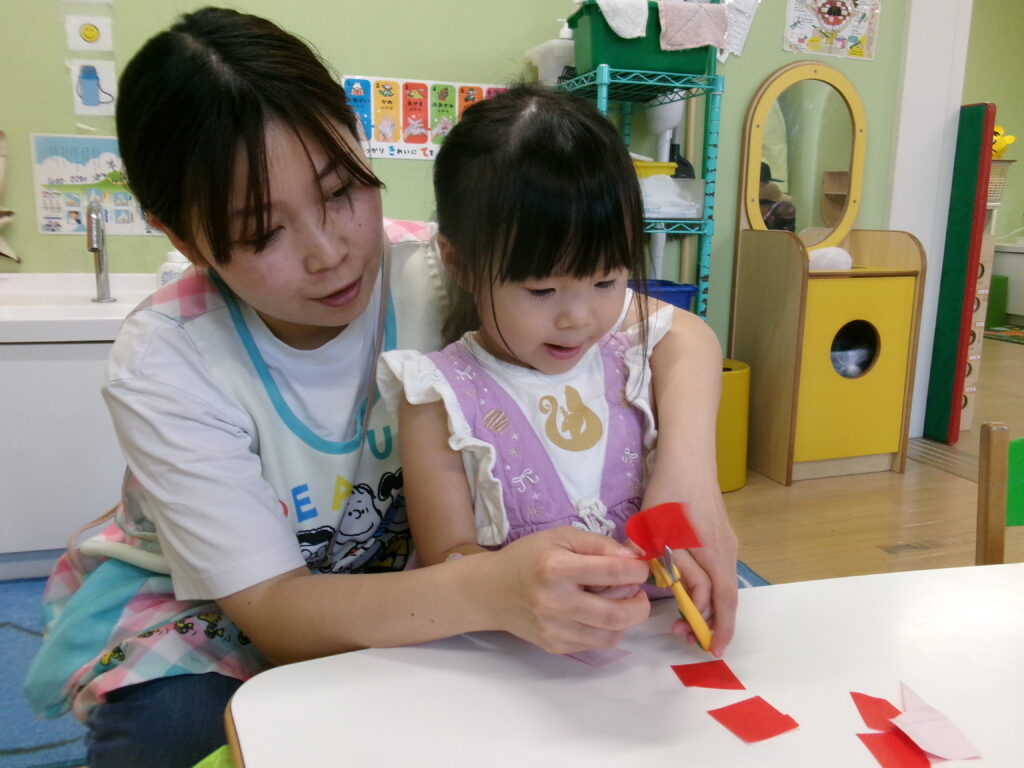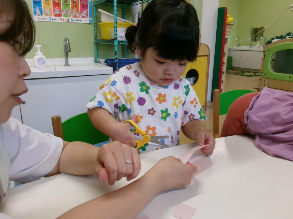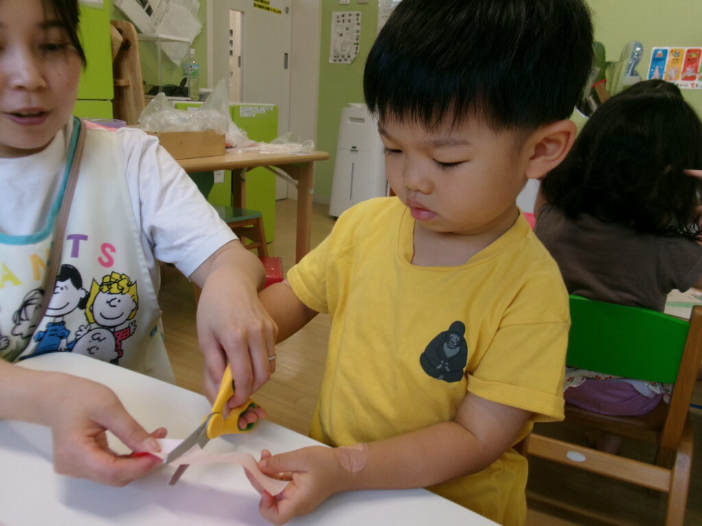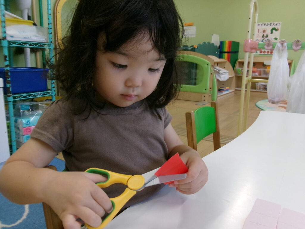 「できた!」「こんなかたちにきれたよ」と嬉しそうに見せてくれました♪