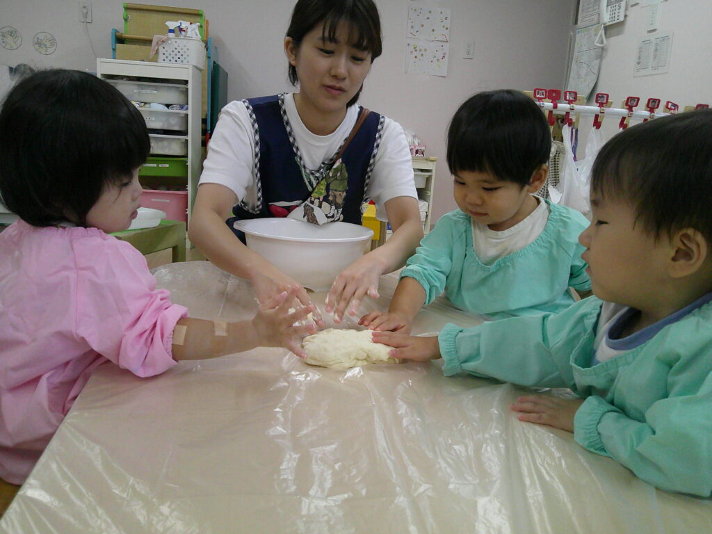 最後には片栗粉と小麦粉を混ぜてダイナミックに触っていました☆