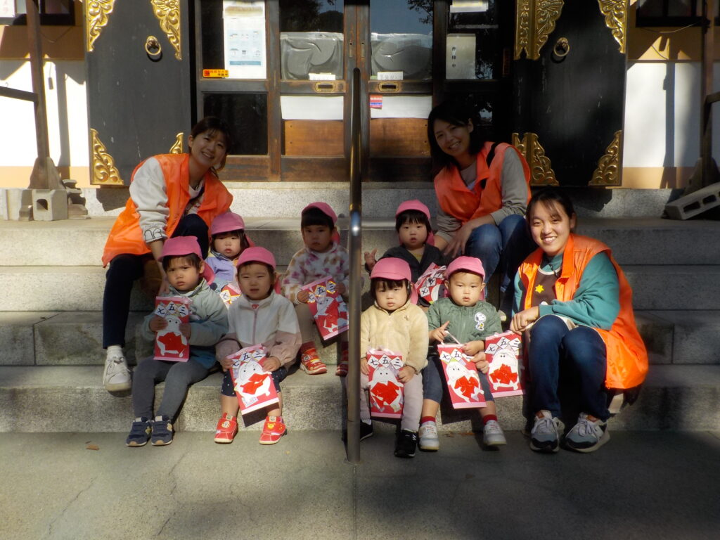 神社に付くと目を輝かせていた子ども達。記念に写真撮影もしました。