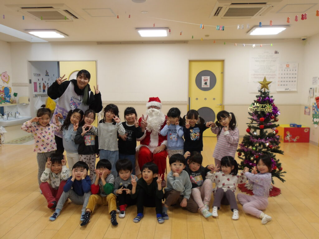 クリスマスクイズをしたり、各クラスで演奏を披露したり楽しく過ごしましたよ。サンタさんも来てくれ、質問をしてみたりプレゼントをもらって嬉しそうでした!