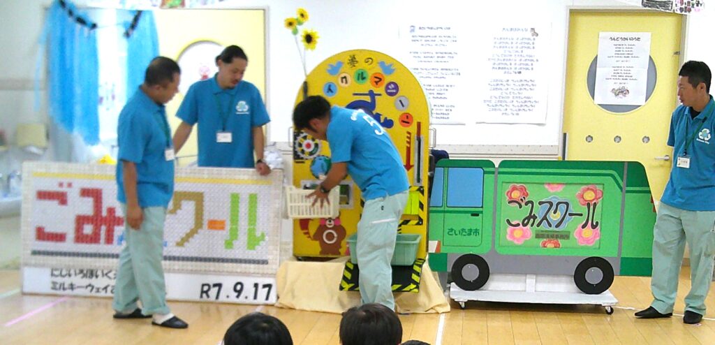 お部屋では紙芝居を見たり分別ゲームをしたり「リサイクル」について楽しく学びました。