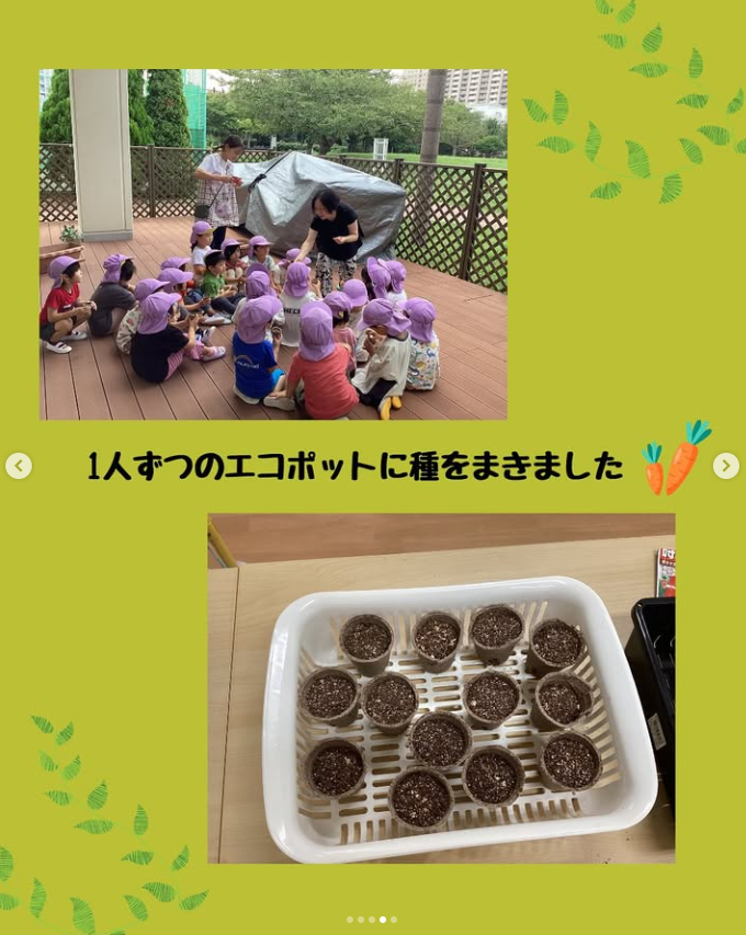 今月のすくわくプログラムでは、にんじんの種まきとキャベツの苗植えをしました。