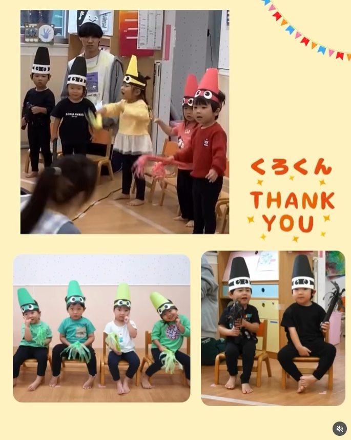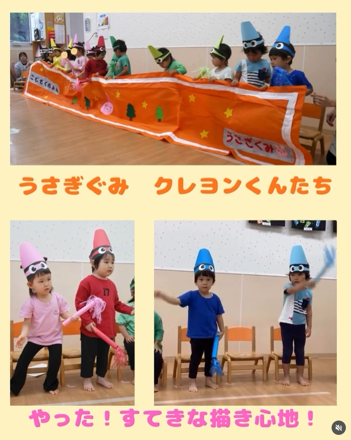 にじの森保育園 うさぎ組 生活発表会 2025-10-24 2歳児うさぎ組の生活発表会🎨 演目は「クレヨンのくろくん」でした。2歳児になると、少しずつ“本番”ということを理解できるようになり、「ママ見にくる?」「おうちでも練習したよ!」と楽しみにしていた子どもたち。 いざステージに立つとちょっぴり緊張した姿もありましたが、一人ひとりが自分なりに頑張る姿がとても立派でした✨ 少しずつ“みてもらう嬉しさ”や“頑張る気持ち”が育ってきていて、一段と成長した姿が感じられました。 (写真はリハーサル時のものです)