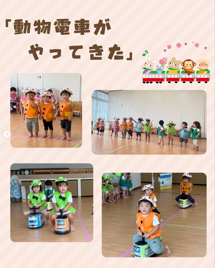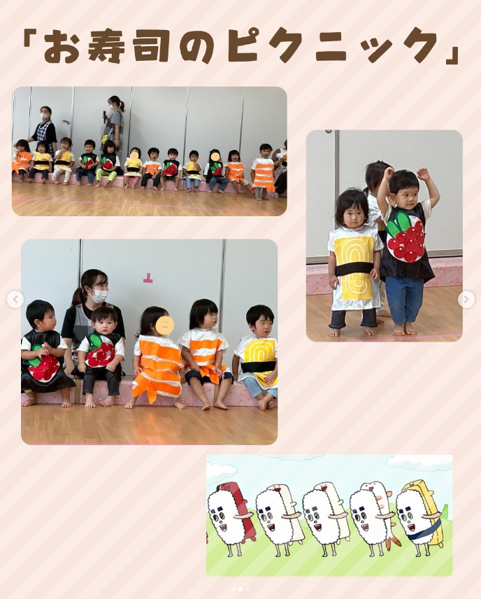 2つのグループに分かれて「お寿司のピクニック」と「動物電車がやってきた🚃」を発表しました🎵