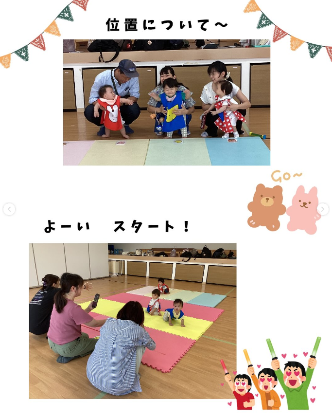 子育て交流サロンでは恒例の「ハイハイ&ヨチヨチレース」を行いました💨