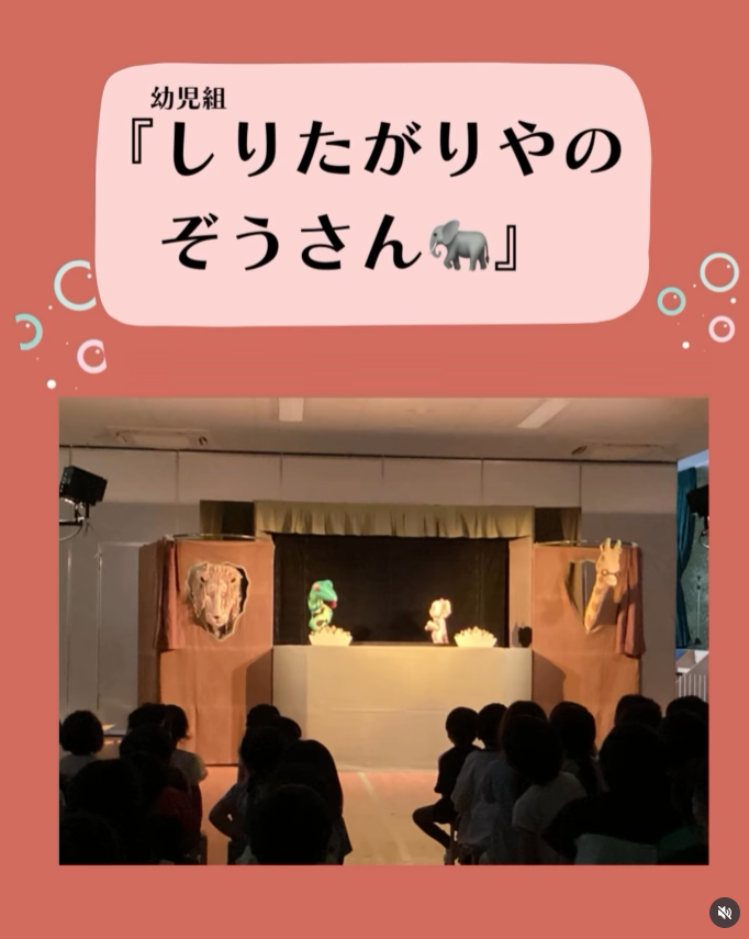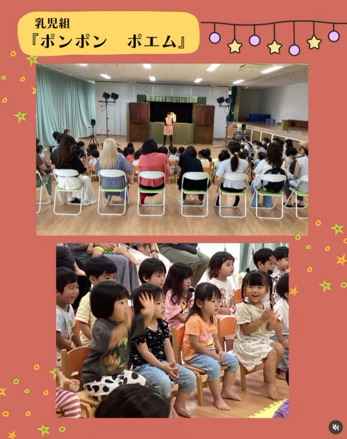 にじの森保育園 人形劇観劇会 2025-10-10 プロの人形劇を子育てサロンのお友達も一緒に観劇しました🐶 0〜2歳の子どもたちは「ポンポンポエム」のやさしい動きに見入って、指を指して笑ったり、ちょっぴり怖くなったり😊😩 3〜5歳の子どもたちは「しりたがりやのぞう」のお話に夢中になり、びっくりしたり大笑いしたりと、全身で楽しんでいました🐘💓 こうした体験は、これから迎えるお遊戯会に向けての表現活動にもつながっていきます。子どもたちの表現がどんなふうに広がっていくのか、とても楽しみです✨