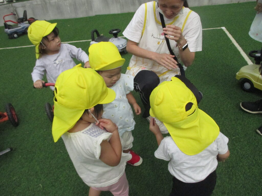 やっと 2025-10-17 やっと気候が落ち着いて 園庭遊びができるようになってきました たまたま職員の手に乗っかったてんとう虫が気になる様子 てんとう虫に集まってきた子どもたち 広い園庭にはオリーブやどんぐりの樹もあって 子どもたちの良いおもちゃになっています お外がいいですねぇ