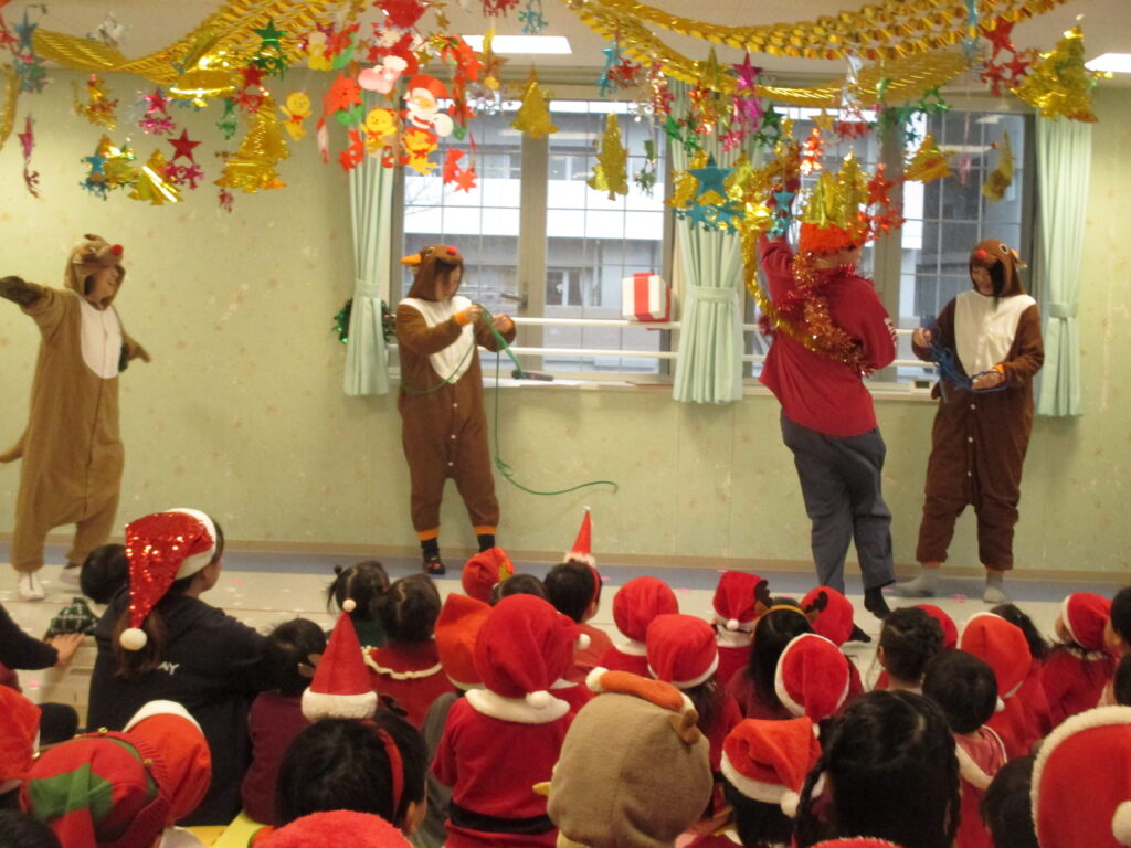 先生たちからのプレゼント 「となかいさんのいちにち」という絵本を実写版W サンタさんがクリスマスに出かける前にトナカイさんはいろんな準備をしているのです これはプレゼントを渡すために体力強化中