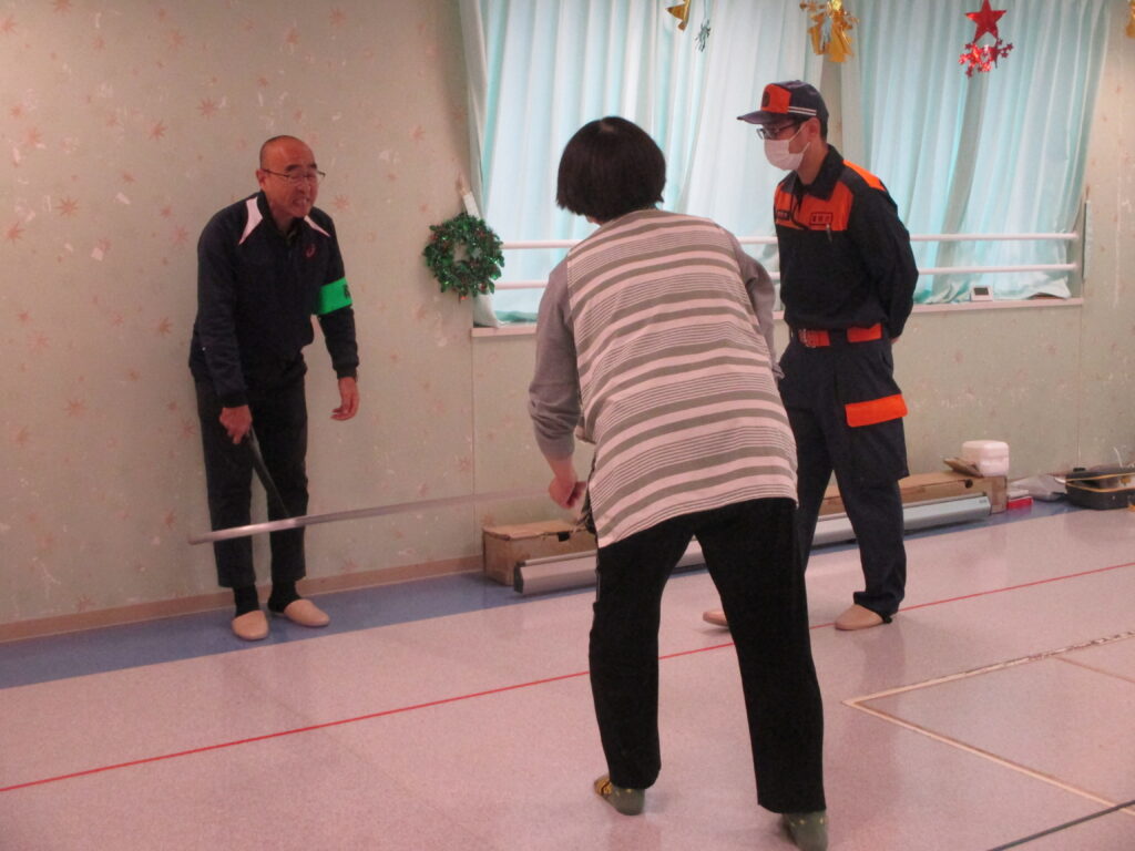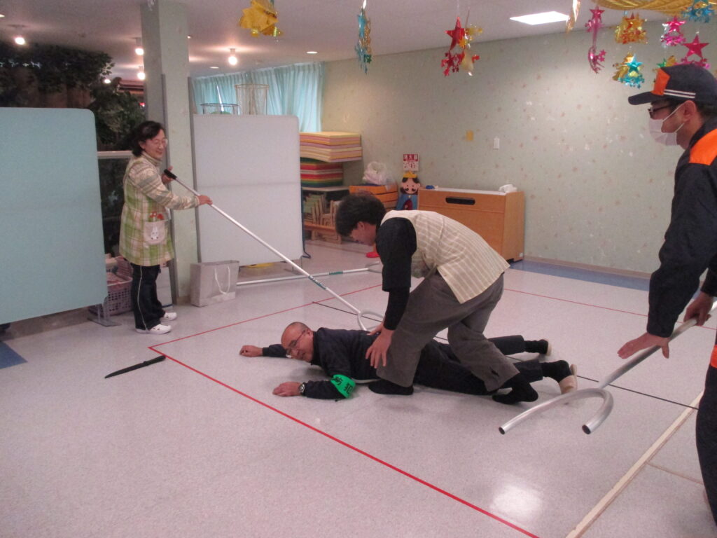 さすまたのちゃんと力の入る使い方 職員も一生懸命学びます