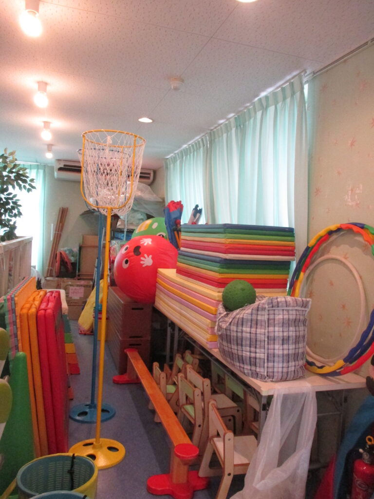 園内紹介2 2026-04-22 こちらはツリーモニュメントの上の部分 階段を登りながら虫や動物を探すことができます。 こちらは体育倉庫 マットも他もカラフルで可愛いですよね。この奥は職員の休憩室になってますーテーブルやいす、クッションなどあってゆったりできます ここはサファリ と呼ばれるお部屋 主に合同保育で使うことが多いですがいつでも使えまーす 今回はクラスでない部分の紹介でした