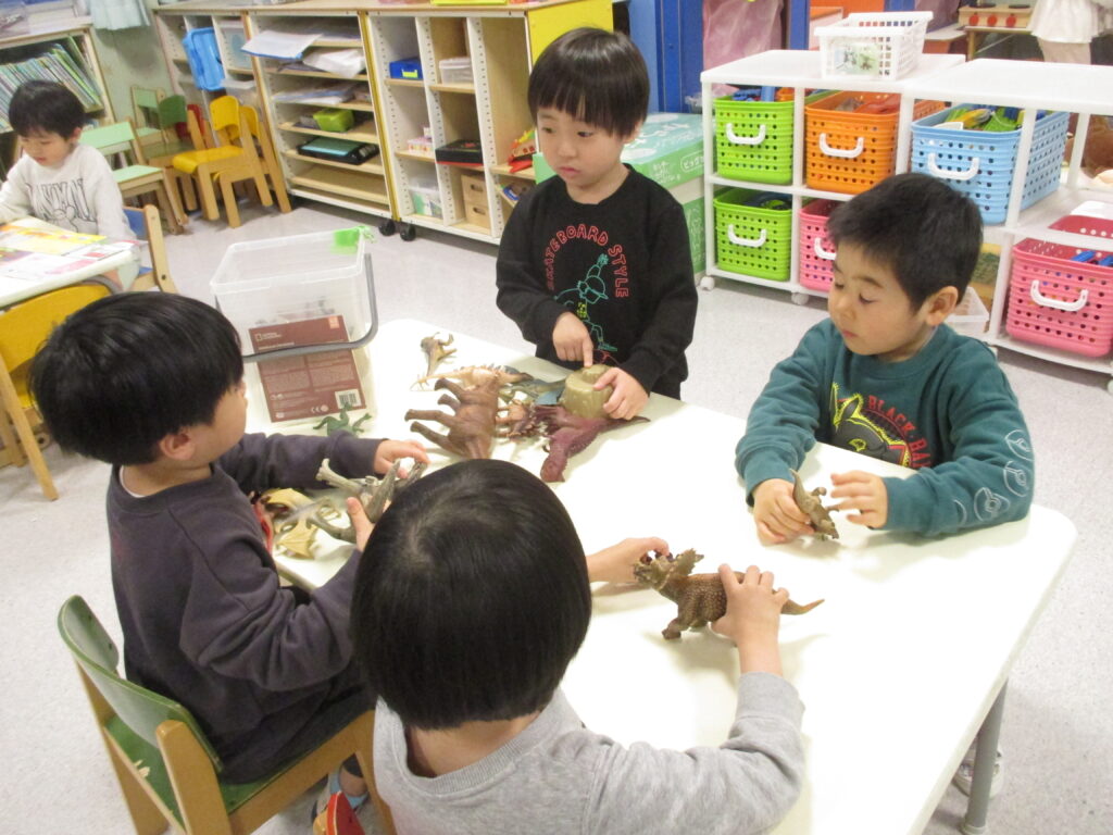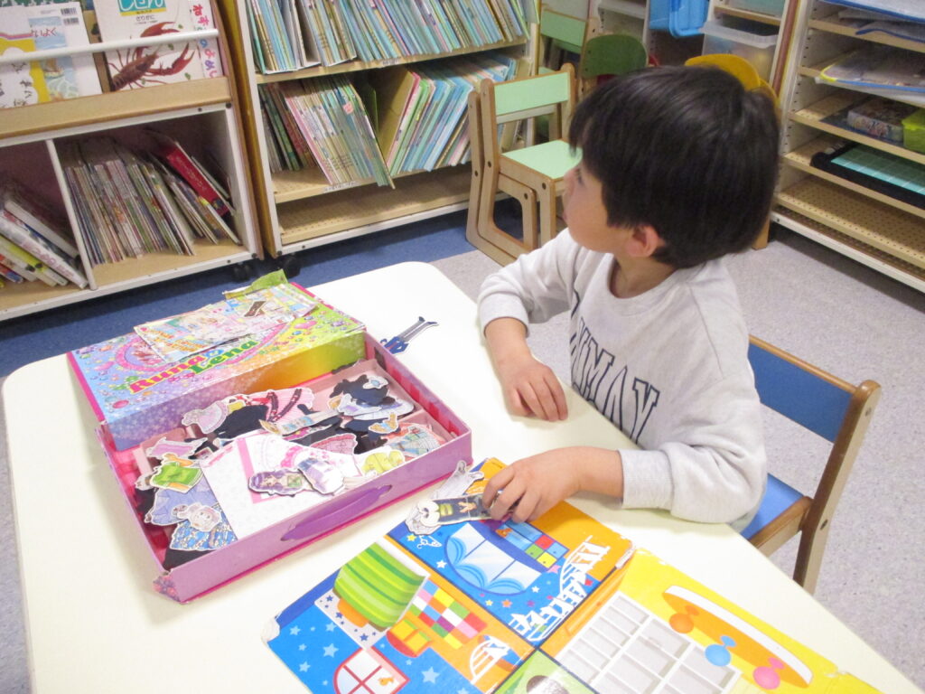 延長タイム(合同保育) 2026-03-24 夕方からは乳児クラス 幼児クラスが集まって合同保育になります 通称サファリと言われたスペースにて各々 好きな玩具で落ち着いて遊んでいます ここは着せ替え磁石のコーナー 異年齢で集まって遊ぶのも良い時間 でした