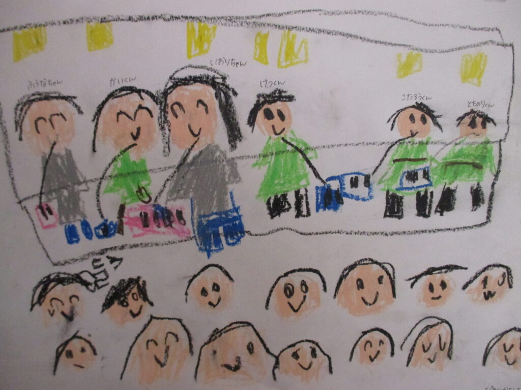 経験画 2026-02-20 大きい行事の後には経験画を描いている 幼児クラス 絵から楽しんでいる様子が伝わりますね 自分だけではなく周りの人や景色も描けるようになってきます。 たくさんのお客さんも笑顔 綺麗に塗っていますね どの絵も笑顔いっぱいでよかったです