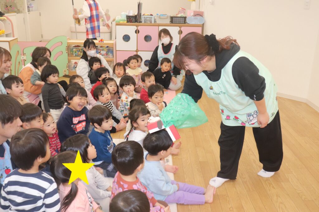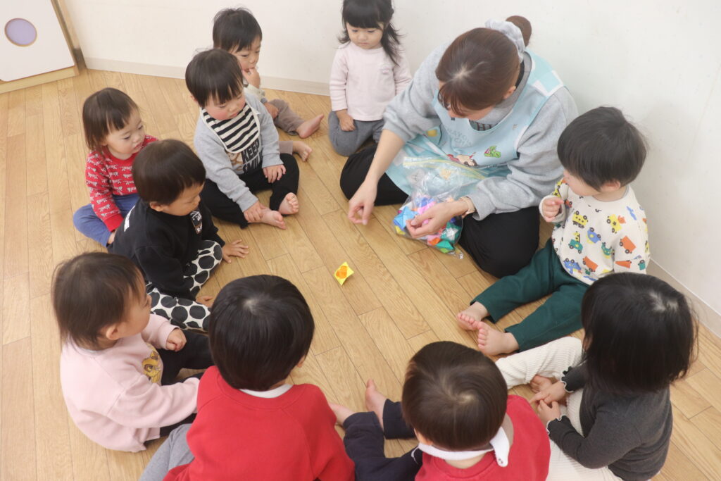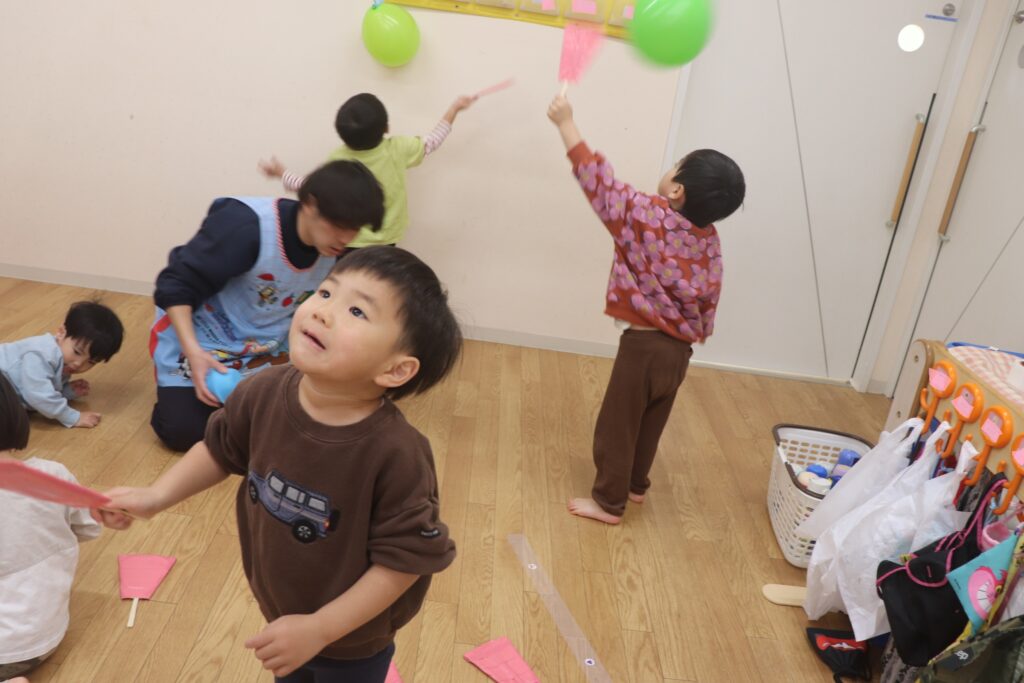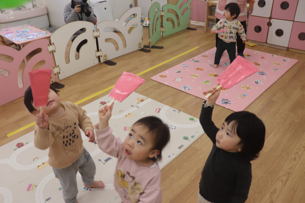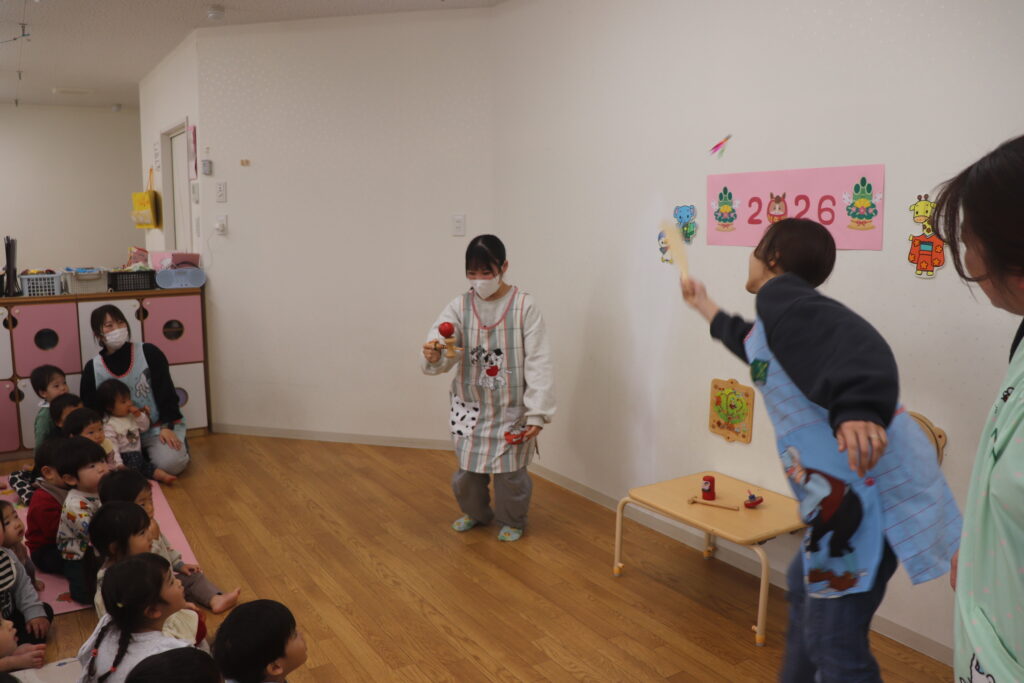 今日は乳児組、幼児組に分かれてお正月遊びの会がありました。