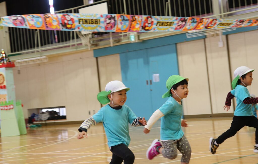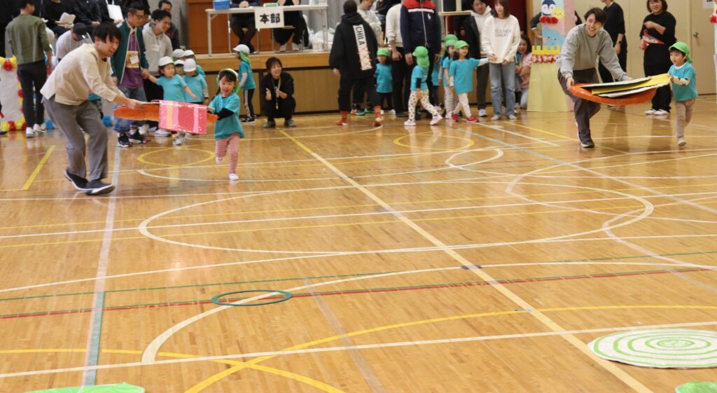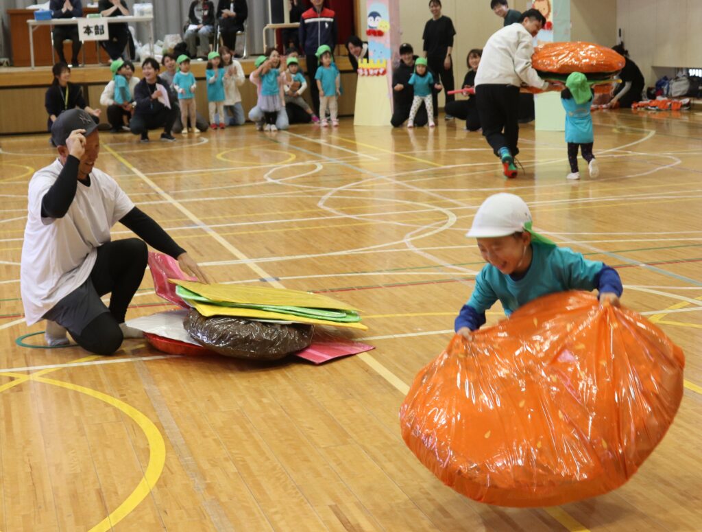 ぺんぎん組 運動会 2025-11-12 11/8(土)、川柳小学校の体育館で運動会がありました。 今年度は雨で運動会が延期になってしまったのでクラス毎での開催になりました。 かけっこでは赤白に分かれて走りました!! お遊戯では緊張しながらも「スマイル」の歌に合わせて踊ることができていましたよ。 親子競技では、大きいハンバーガーを運ぶので大盛り上がり! とても楽しい運動会でしたね!