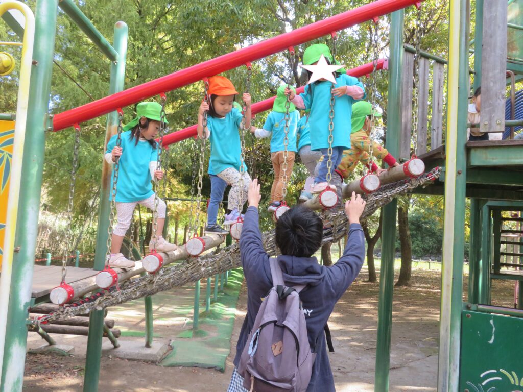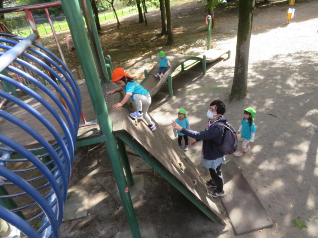 早速遊具で遊び始めると、色んな遊具に挑戦し、時間たっぷり遊ぶことができました。
