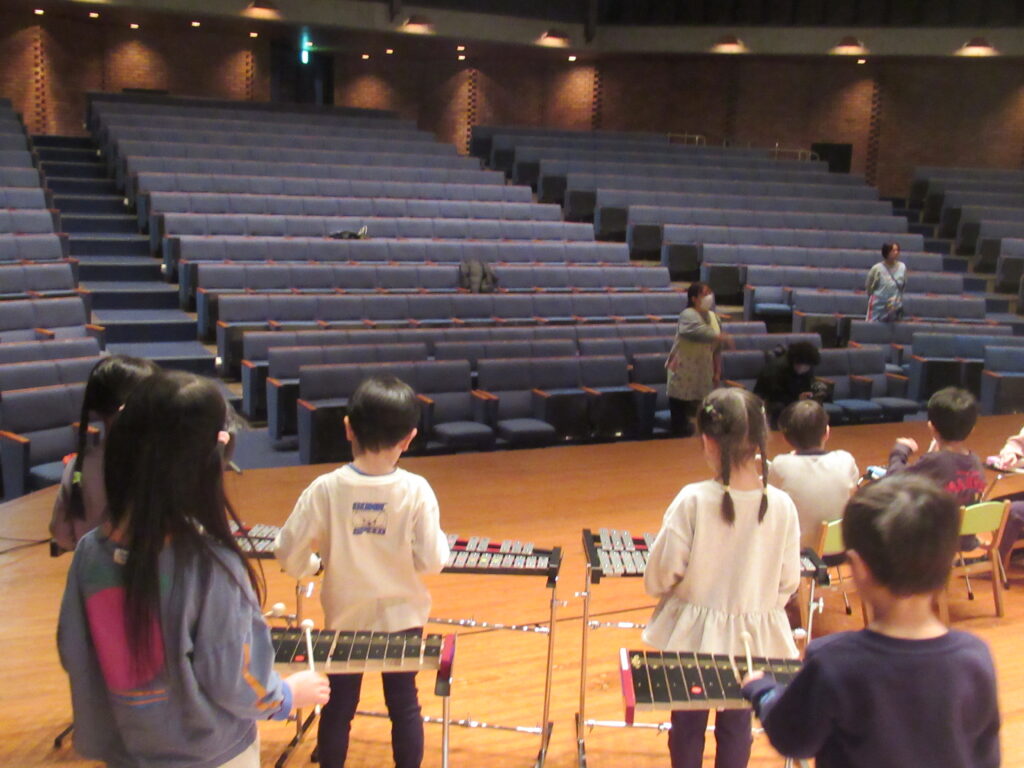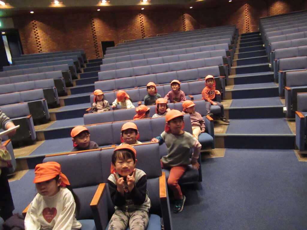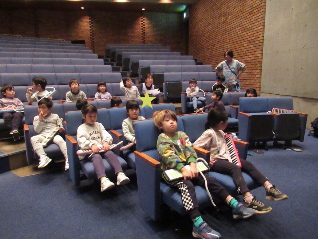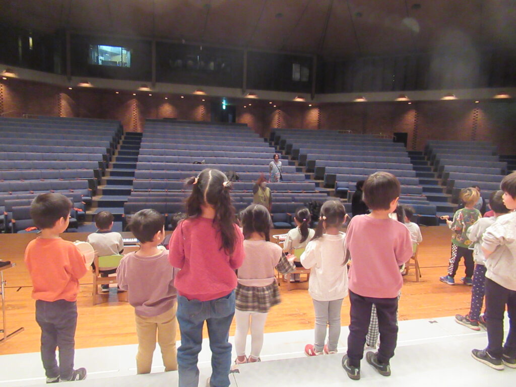りす組、幼児組は越谷サンシティホールでお遊戯会のリハーサルを行いました。