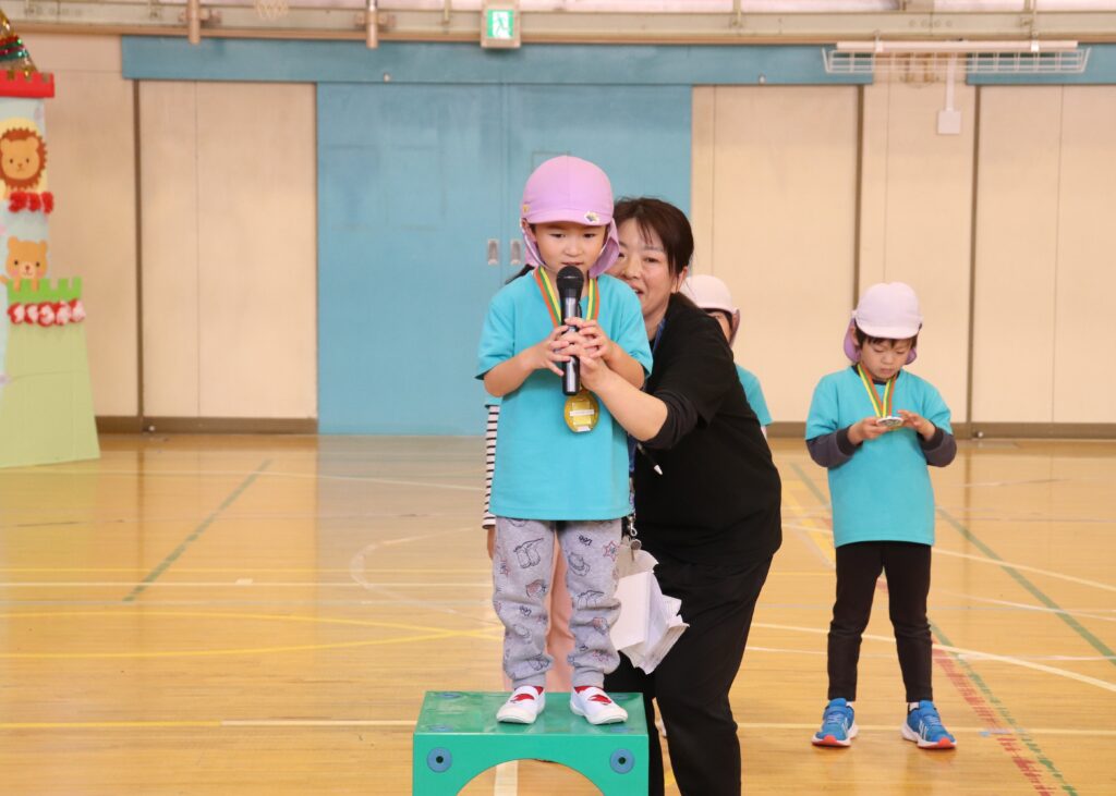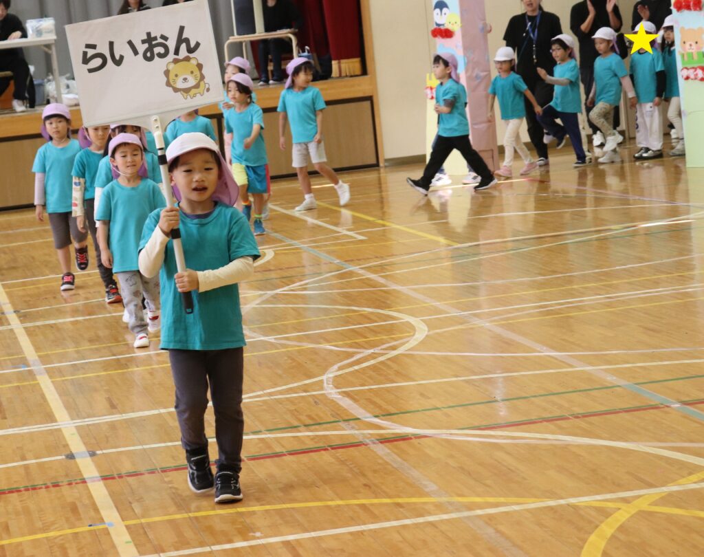 らいおん組 運動会 2025-11-12 11/8(土)、川柳小学校の体育館で運動会がありました。 今年度は雨で運動会が延期になってしまったのでクラス毎での開催になりました。 らいおん組さんの入場、とてもカッコイイです! かけっこ、玉入れでは赤白に分かれて競いあいました! お遊戯のパラバルーンでは全員の息がピッタリでしたよ! リレーはみんなで応援をしました。 閉会式ではメダルをかけてもらい、みんなとっても嬉しそうでした。 とても楽しい運動会でしたね!