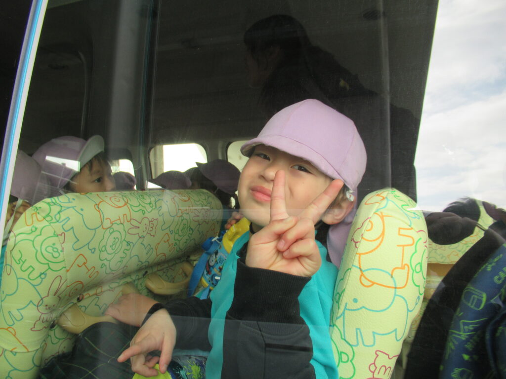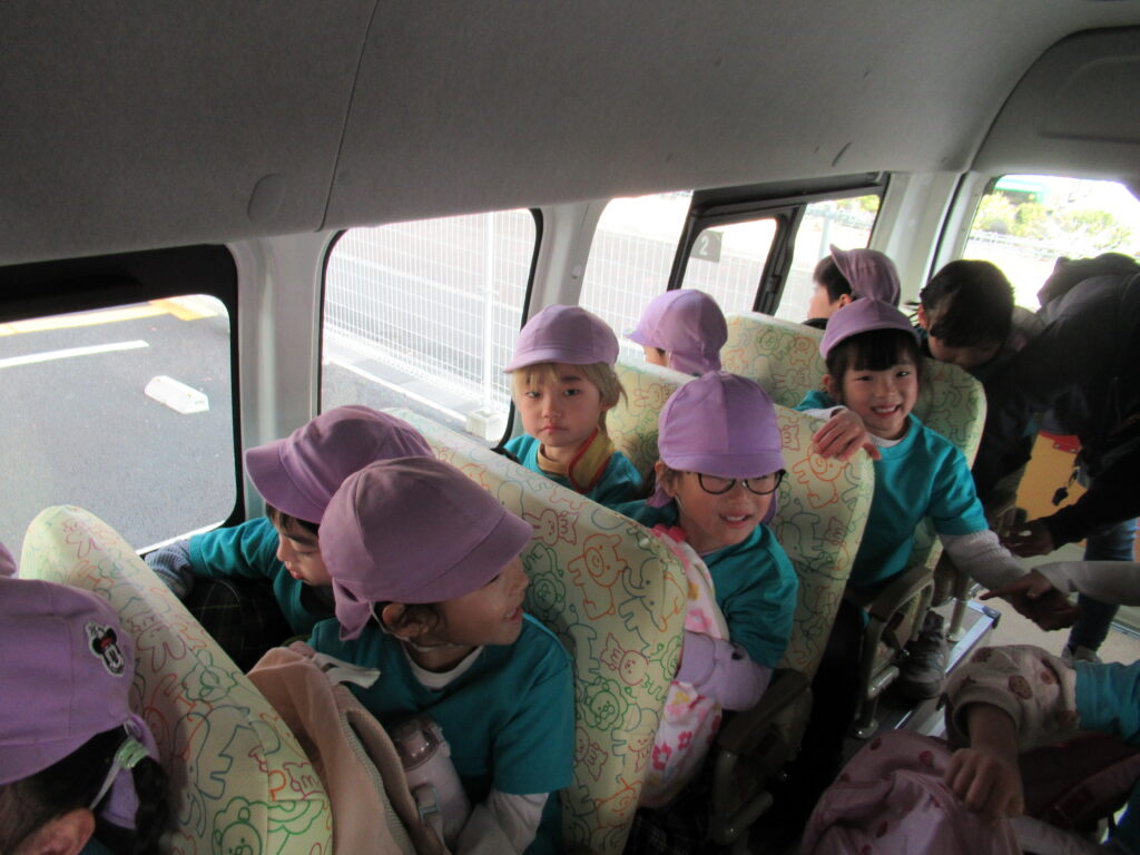 らいおん組お別れ遠足 出発編 2026-03-17 今日は楽しみにしていたお別れ遠足。今年度の行先はミュージアムパーク 茨城県自然博物館です。朝から遠足が楽しみでしょうがない様子でした。子どもたち同士でお弁当やお菓子の話題で盛り上がっていました。 バスに乗り込むと子どもたちはワクワクした表情でした。 バスに乗って元気に出発しました!