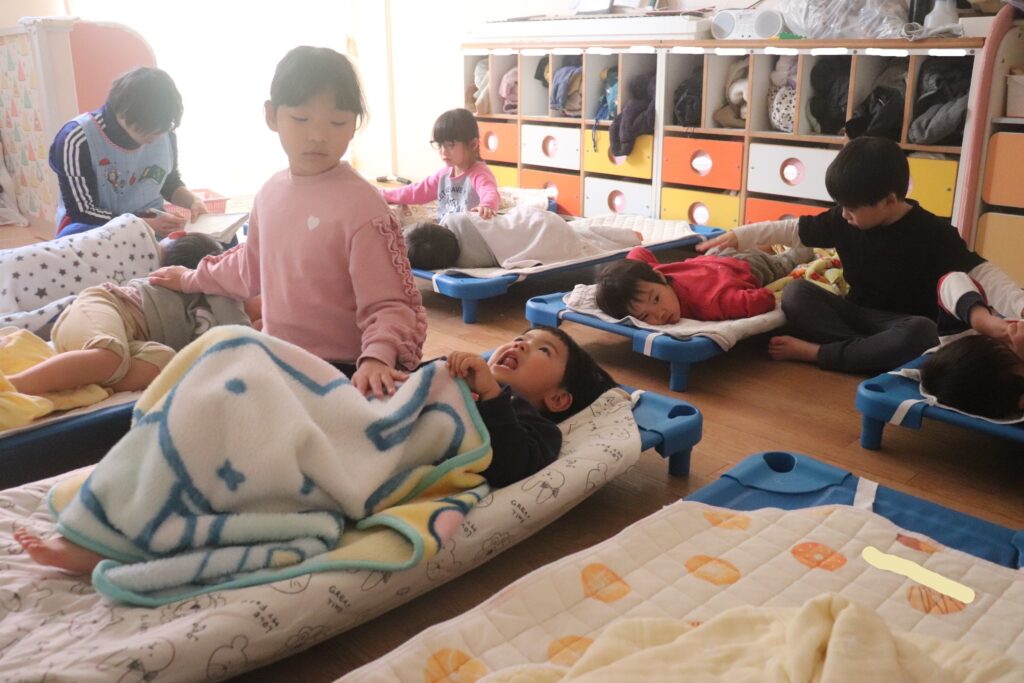 内容は、うさぎ組・りす組のお昼寝の寝かしつけ、玄関の靴箱のお掃除です。