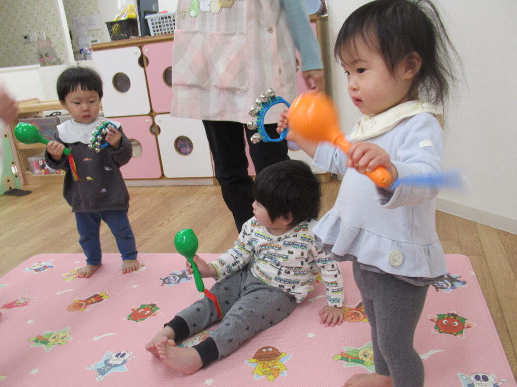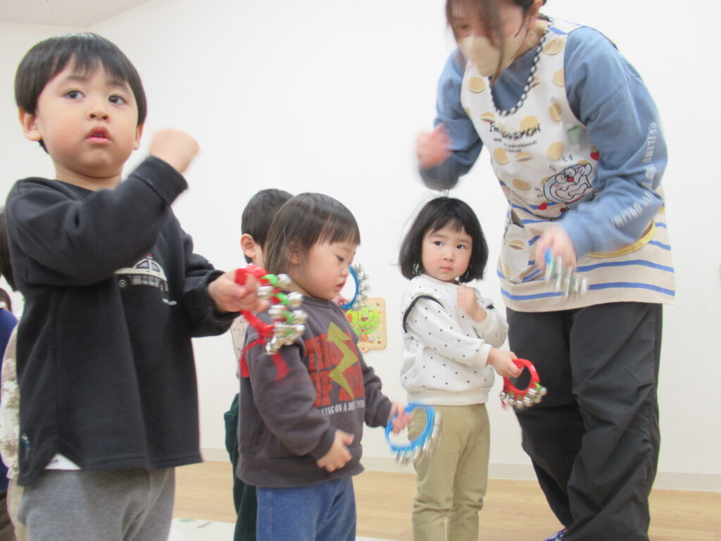 リトミック教室 ひよこ・りす組編 2026-03-09 今年度最後のリトミック教室の様子です。今日は先生がおもしろい楽器を持ってきてくれました。 エレフエ バードホイッスル 今日は鈴とマラカスを使って楽器遊びを楽しみました。子どもによって叩き方に個性が出ていてかわいかったです。 ピアノに合わせて楽しそうに楽器を鳴らして楽しんでいました。 また、来年度もたくさんの音に触れて楽しい時間を過ごしましょう。