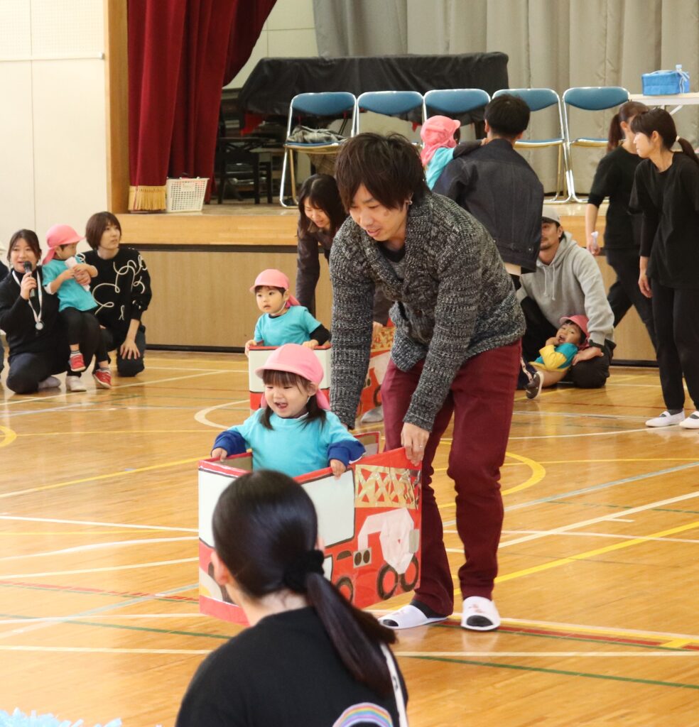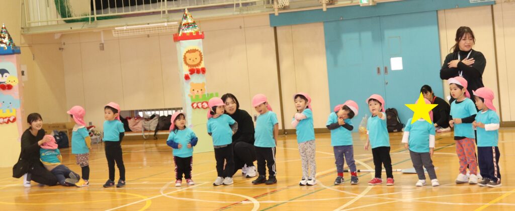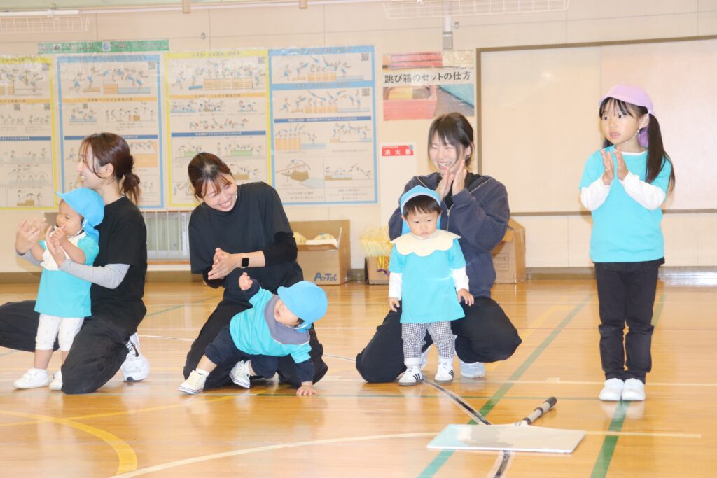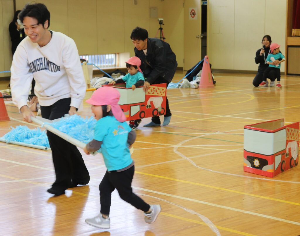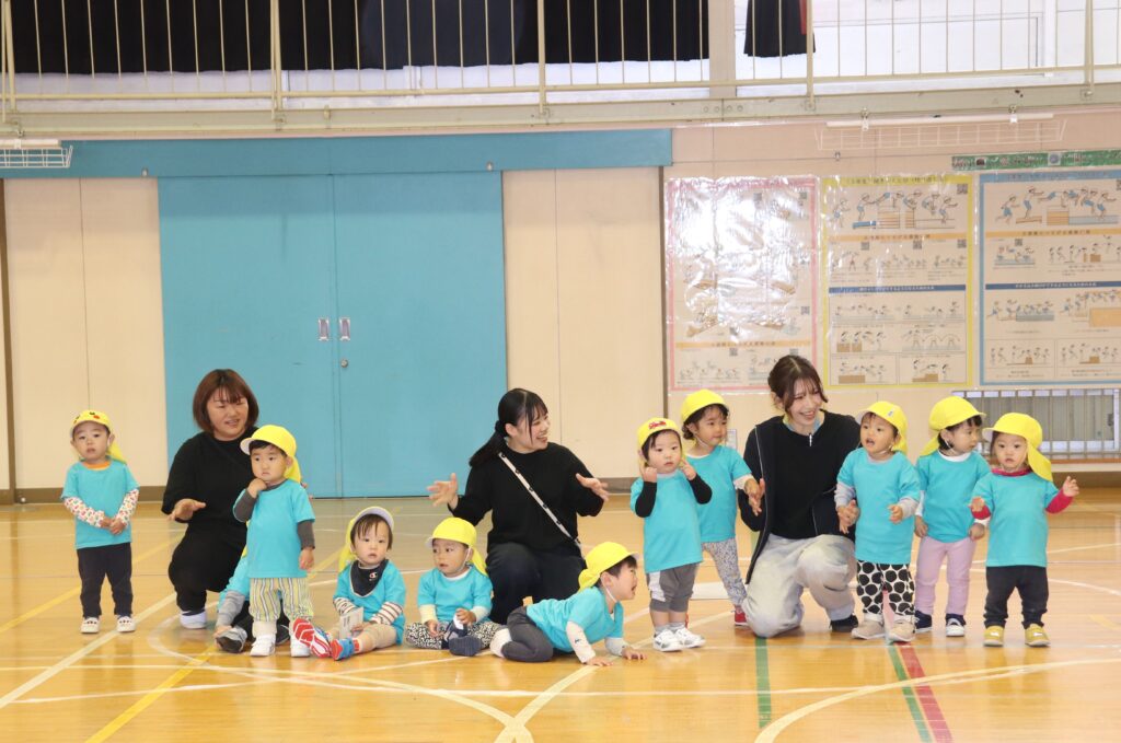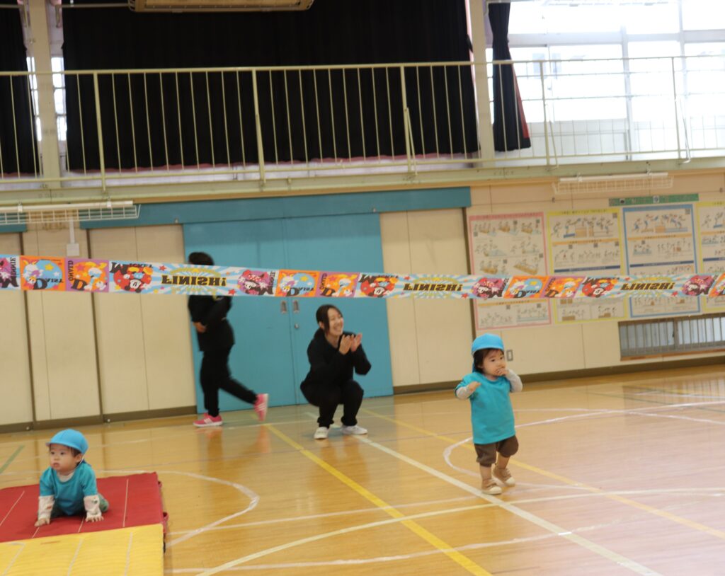 乳児組 運動会 2025-11-14 11/8(土)、川柳小学校の体育館で運動会がありました。 今年度は雨で運動会が延期になってしまったのでクラス毎での開催になりました。 乳児組では少し緊張した様子やパパとママと離れて泣いてしまうお子様もいましたが、旗を持って可愛く入場出来ました! かけっこではパパ、ママのところまで行く姿、可愛いですね。 うさぎ組の親子競技では消防車に変身!! とても楽しい運動会でしたね!