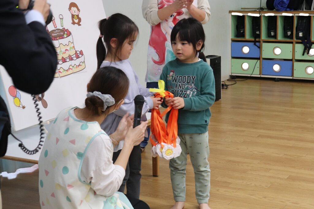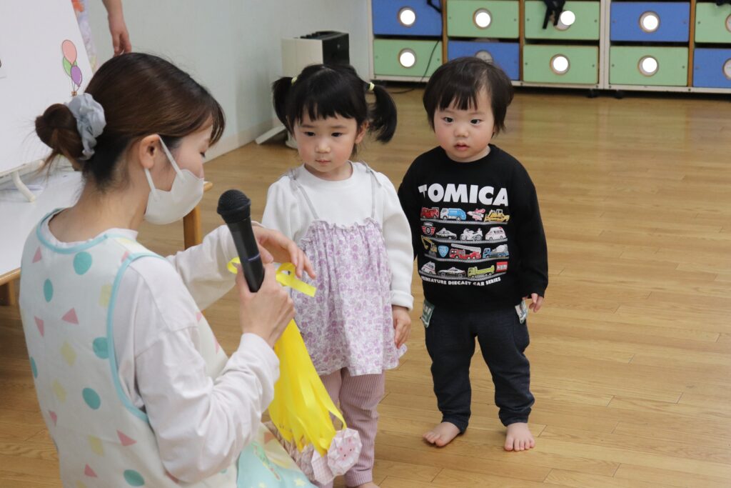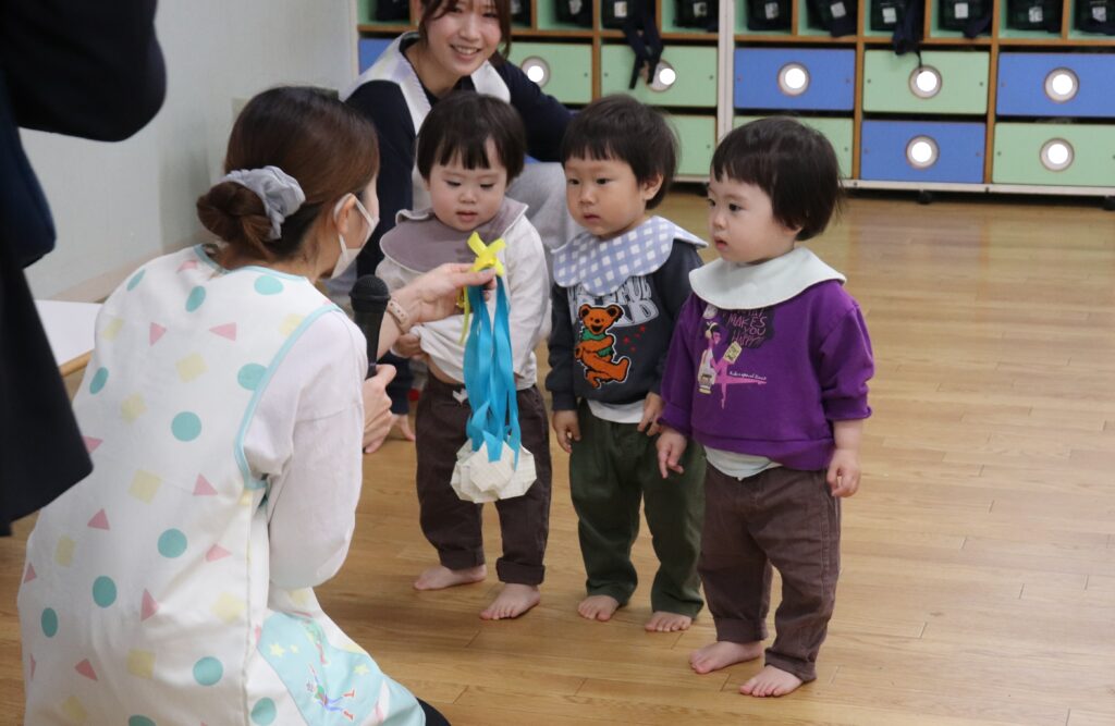 進級式では新しいクラスでお名前を呼ばれると間違えてしまう子もいましたが、元気いっぱいなお返事を聞かせてくれました!
