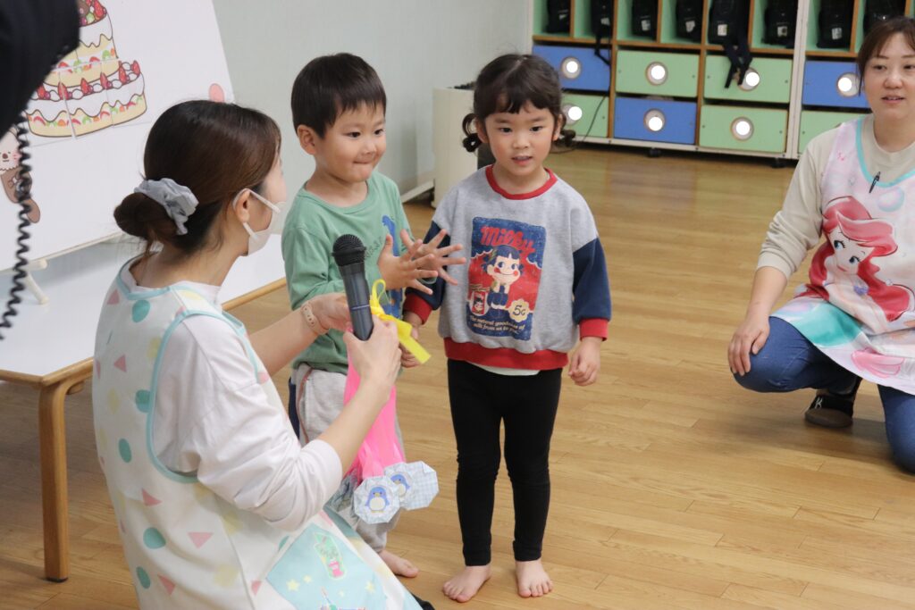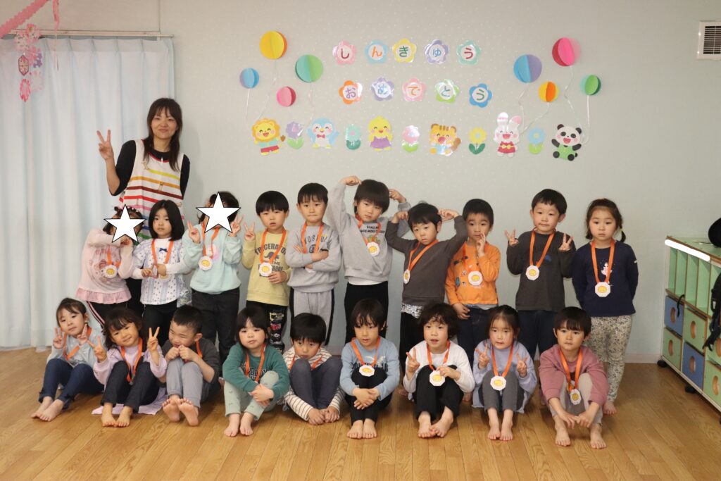 また各クラスの代表のお友だちが前に出てメダルをもらいました。何組さんになったかを聞くと大きな声で答えてくれました!