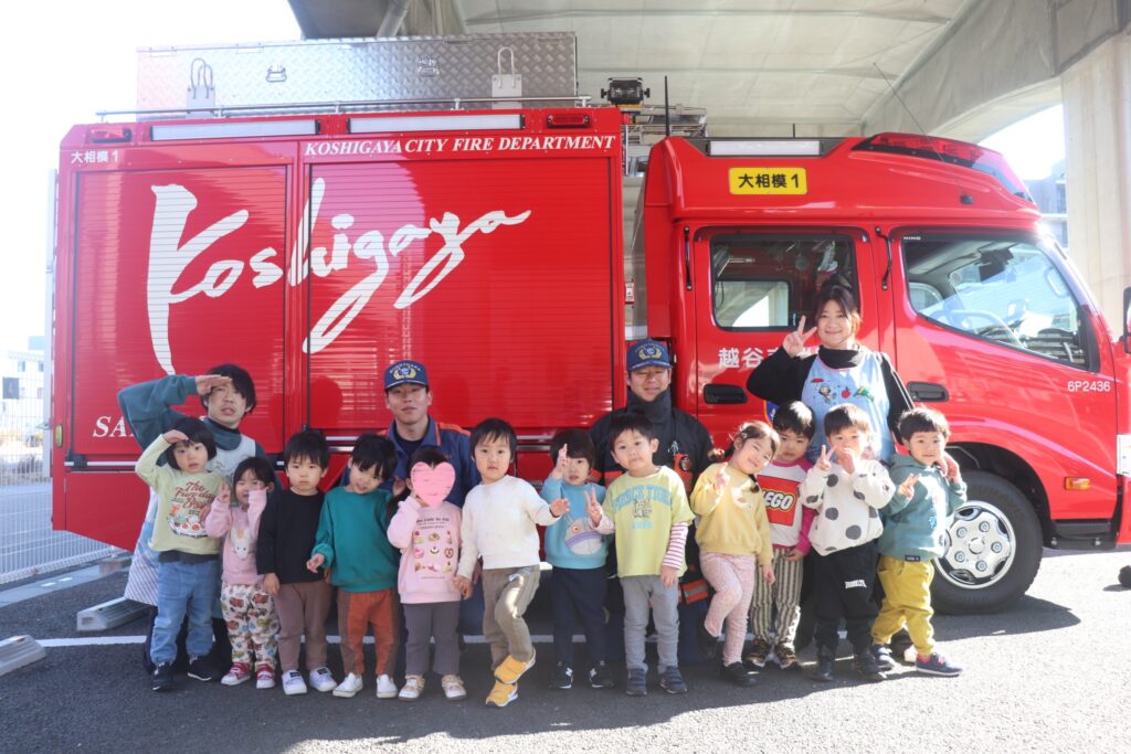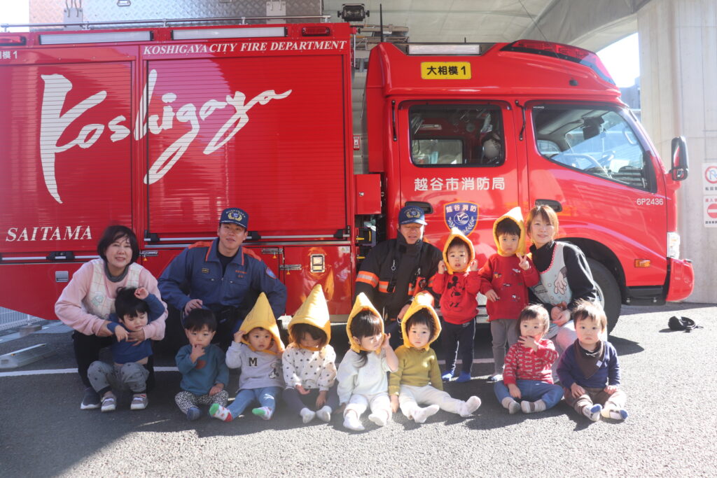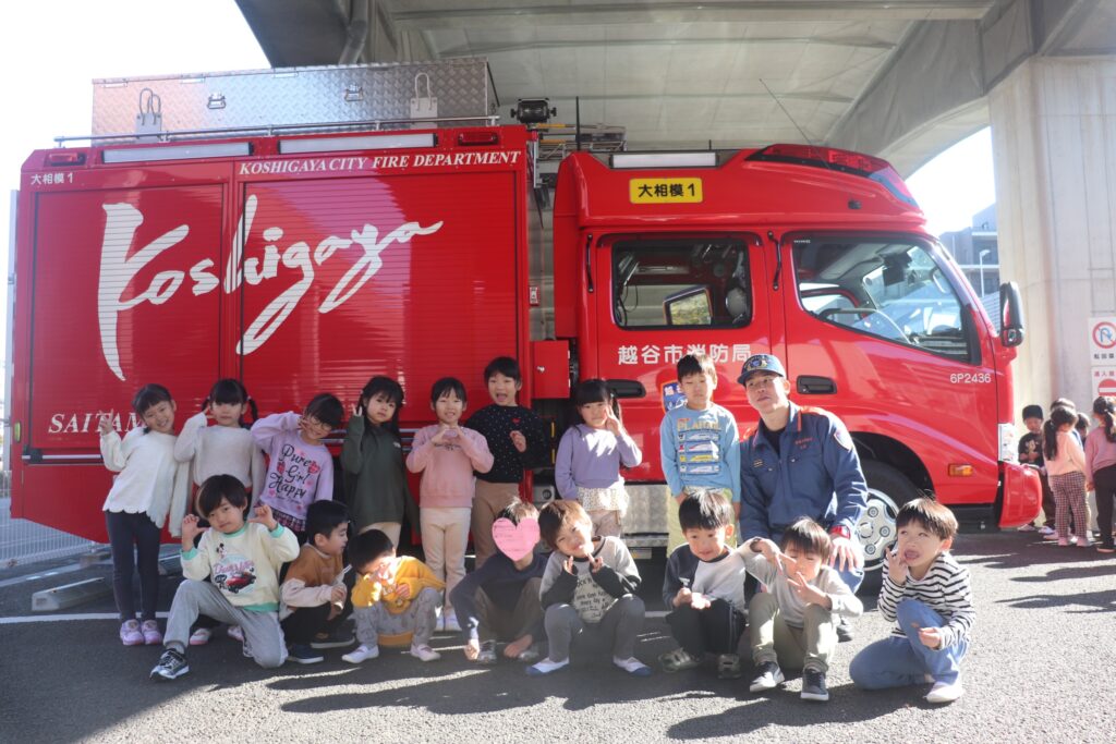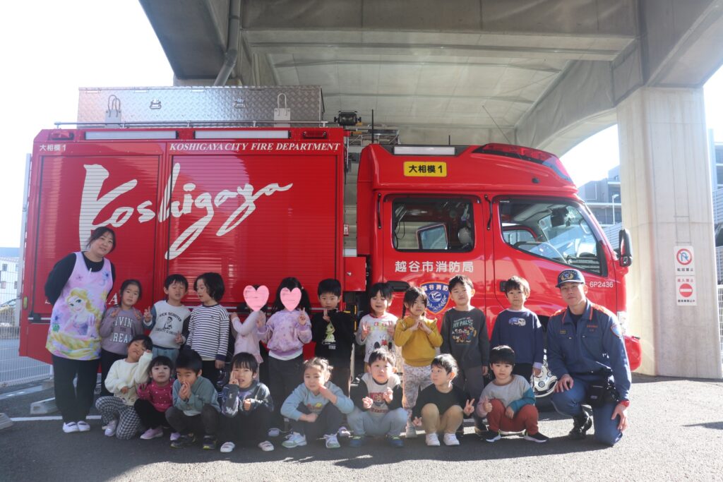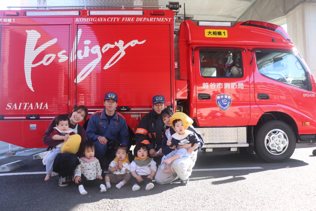消防車の前で記念写真を撮ることが出来ました!