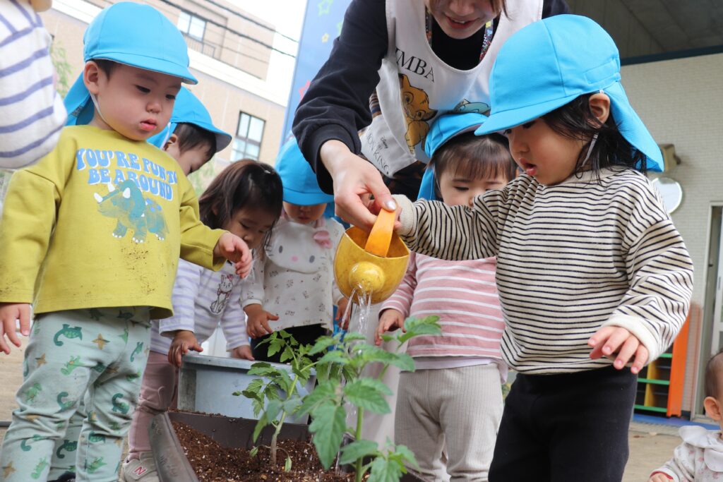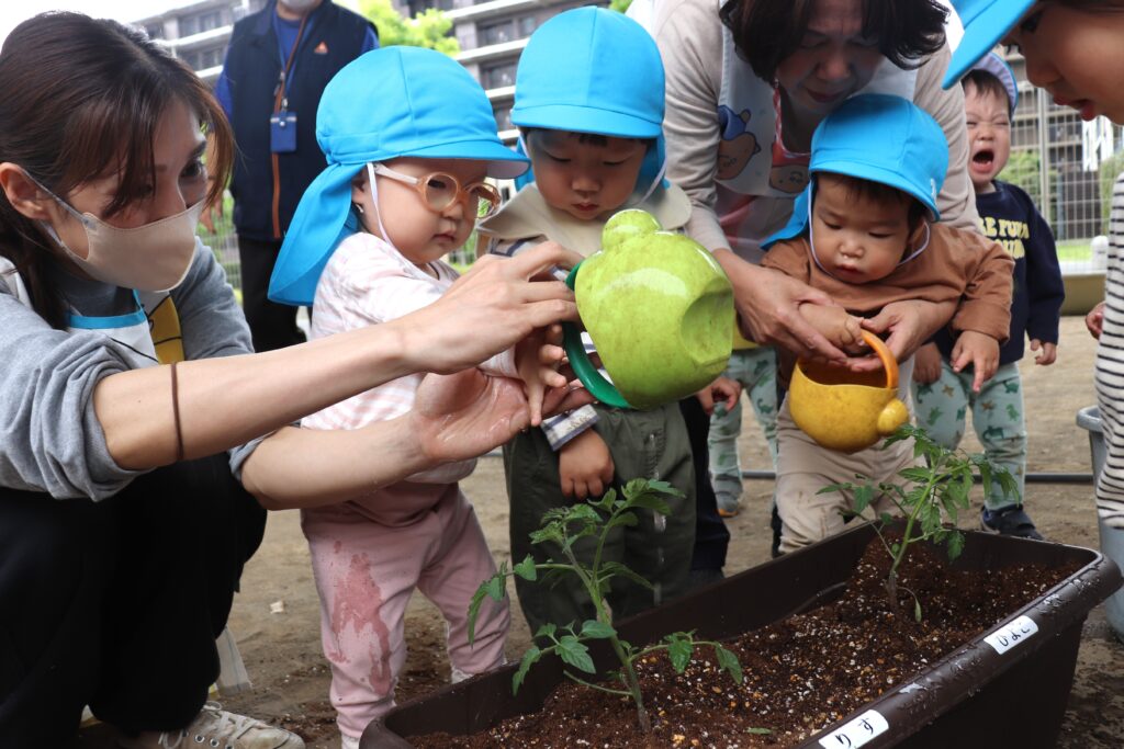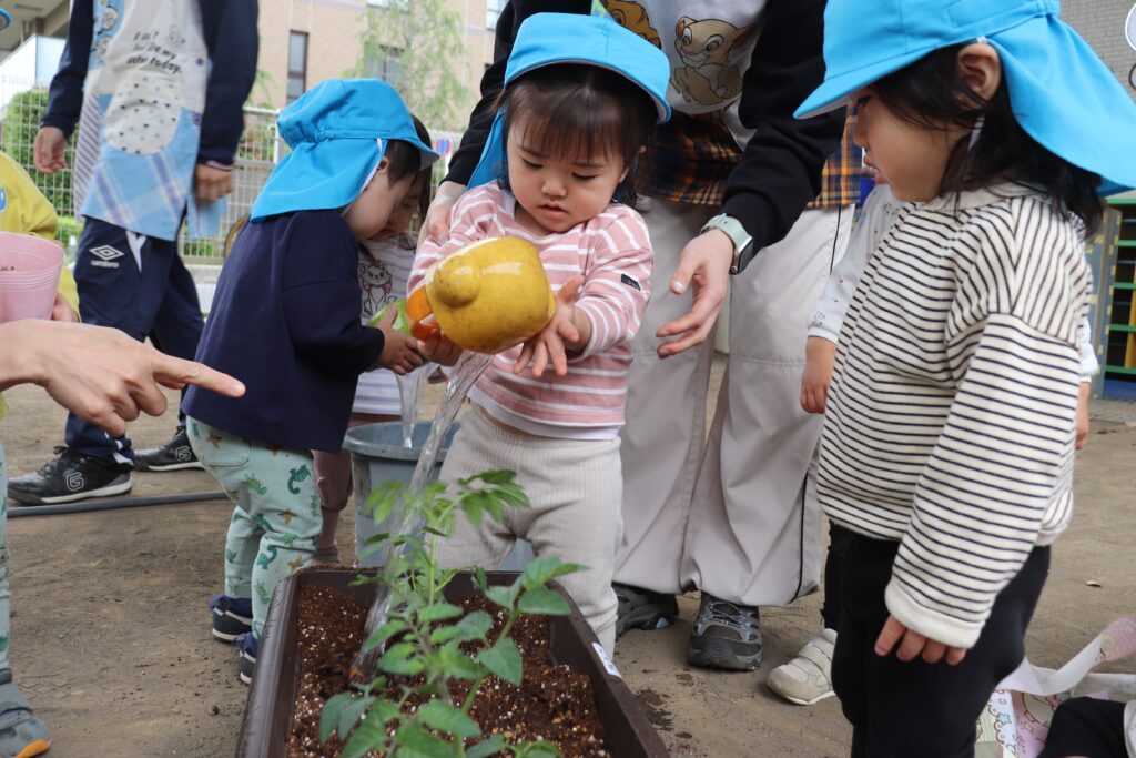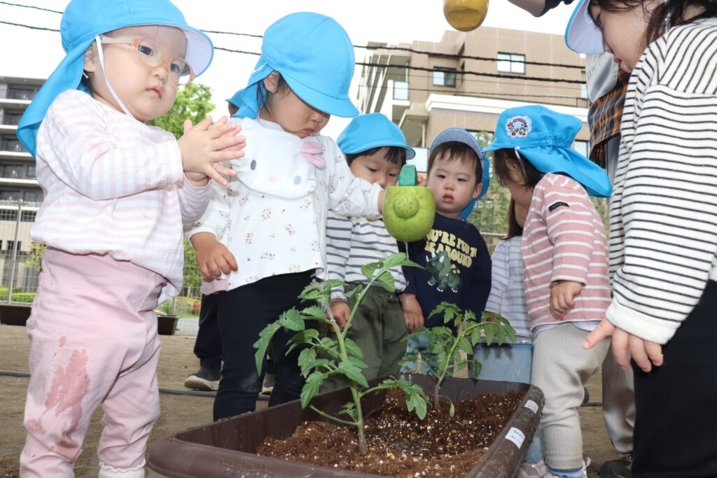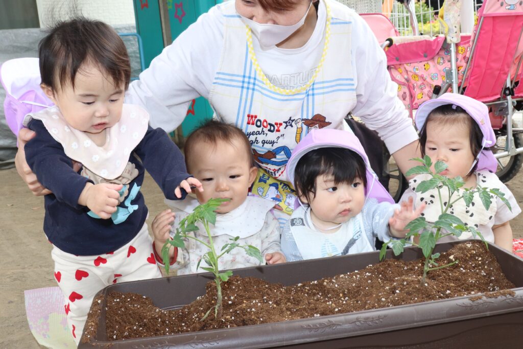 🐥ひよこ・りす組 苗植え🐿️ 2026-04-28 ひよこ・りす組で、ミニトマトの苗植えをしました🍅 苗に興味津々な様子でした! みんなで順番に土を掘り プランターから土があふれるほど、一生懸命掘っていました😂 土を均して、水やりをしました🪴 収穫が楽しみですね✨