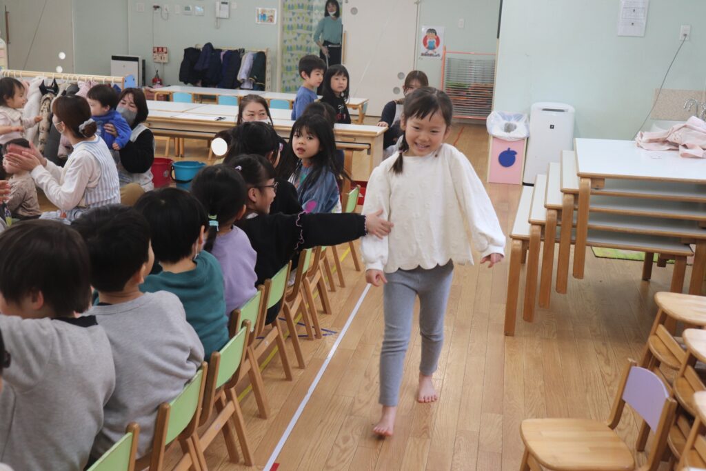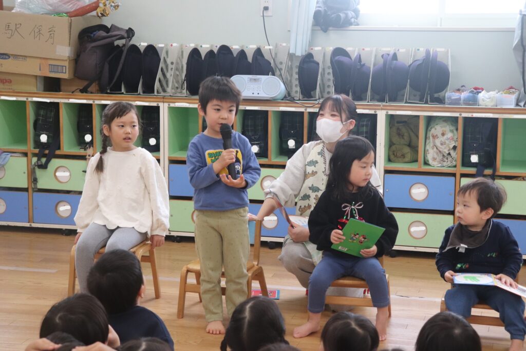 お友だちからハッピーバースデーのお歌のプレゼントをしてもらい嬉しそうな様子でした!最後には、季節の歌「まめまき」をみんなで歌いました♪