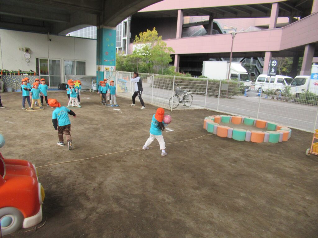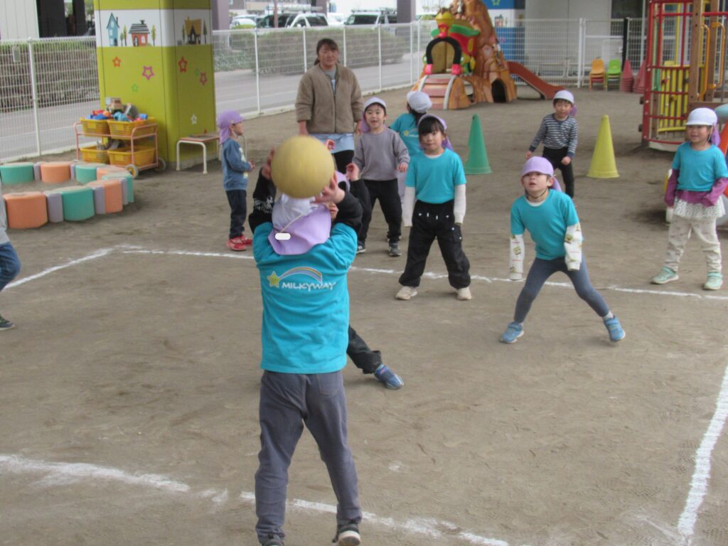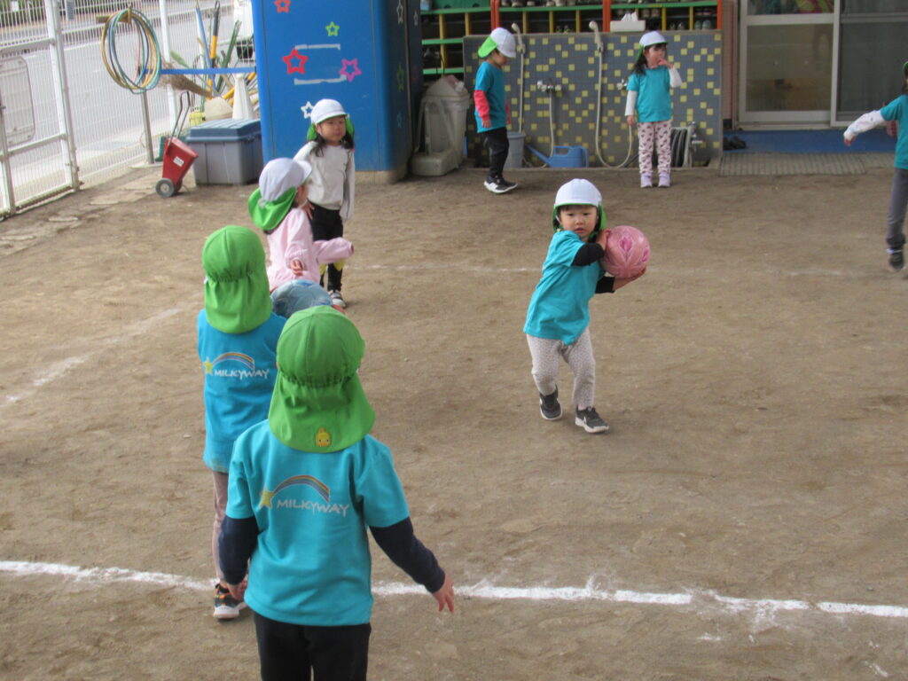 やってみようの心を育む 体操教室編 2026-01-21 今日はうさぎ組、幼児組は体操教室でボールを使った運動遊びを楽しみました。どうしたらボールを遠くに投げられるか。足の出し方や投げる時のポイントを聞き、ボール投げの練習に取り組んでいました。 ぱんだ組 うさぎ組 ぺんぎん組 らいおん組はドッジボールの試合を行いました。 さすがらいおん組。フォームがきれいです。 「ボールを持ったらすぐに投げる」「高く投げる」等、様々な作戦が子どもたちから出てきていました。