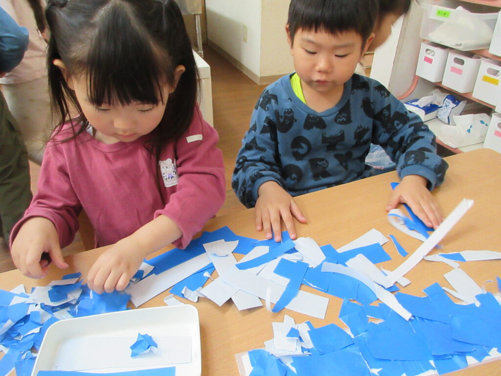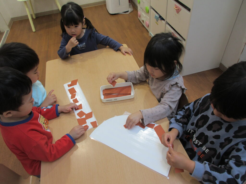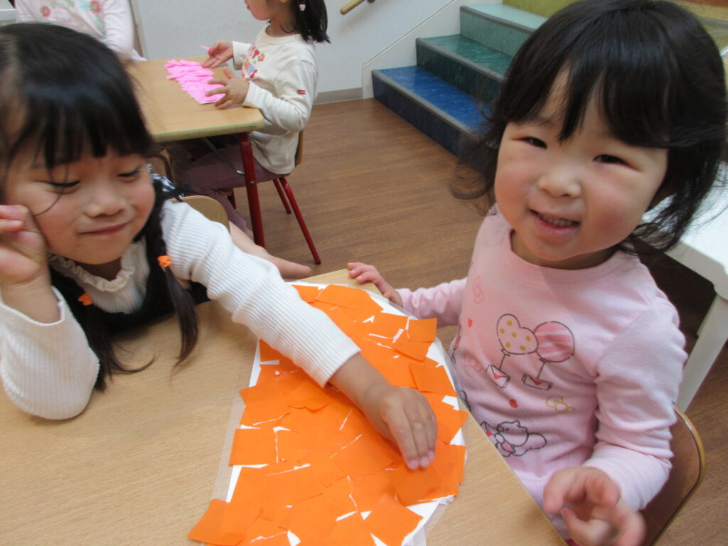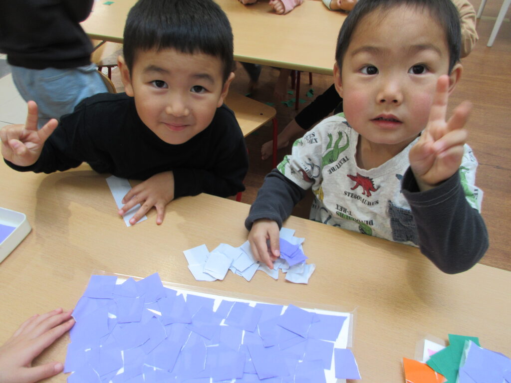 進級おめでとうございます🌸 2026-04-24 新年度に入り、ぱんだ組さんらいおん組さんは大きく環境は変わっていませんが新しいクラスのお兄さんお姉さんとして頑張っています! ぺんぎん組さんはあこがれの幼児クラス、新しいことがたくさんで目まぐるしい日々ですが一生懸命がんばっていますよ! 新年度初めての製作、幼児組全員で誕生表作りをがんばりました♪ 誕生月ごとに分かれてぺんぎんさん、ぱんださん、らいおんさんみんなで協力して頑張りました!