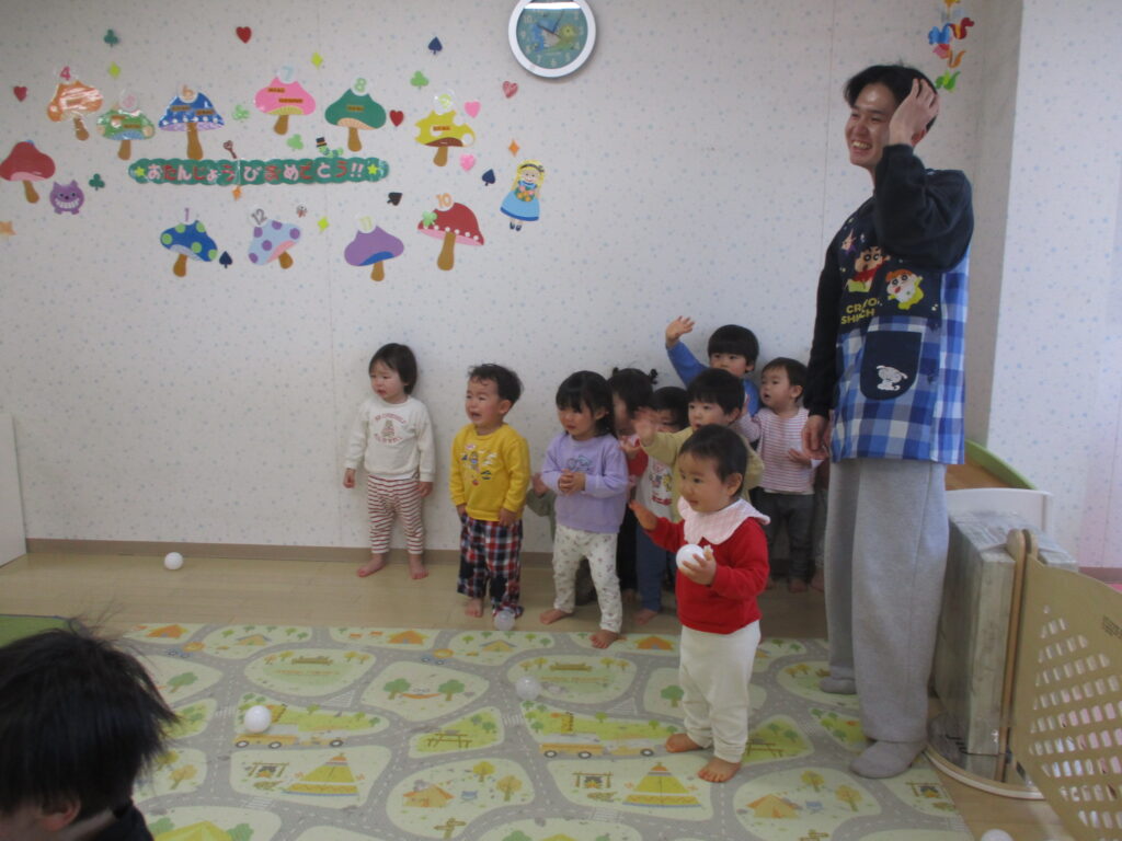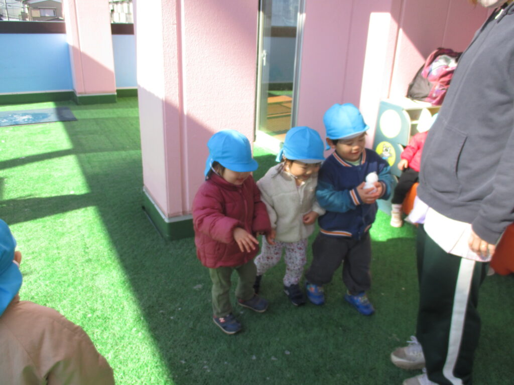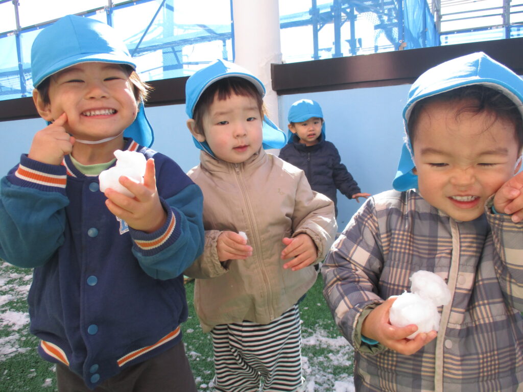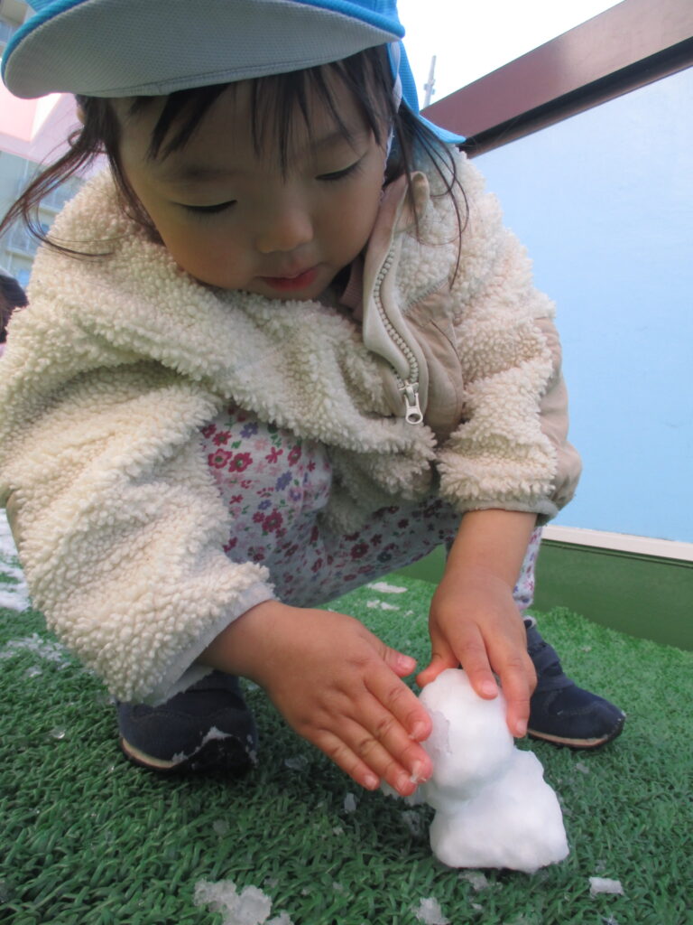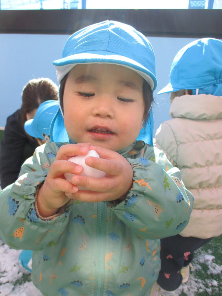 鬼はそと!福はうち! 2026-02-26 突然鬼がお部屋に入ってきてビックリしながらも鬼退治を頑張っていました! ばいばーい!鬼さんもう来ないでね!😢 雪が降った時にテラスで雪遊びをしました! みんなで雪だるまを作ったよ♪ たくさん雪触れてたのしかったね♪