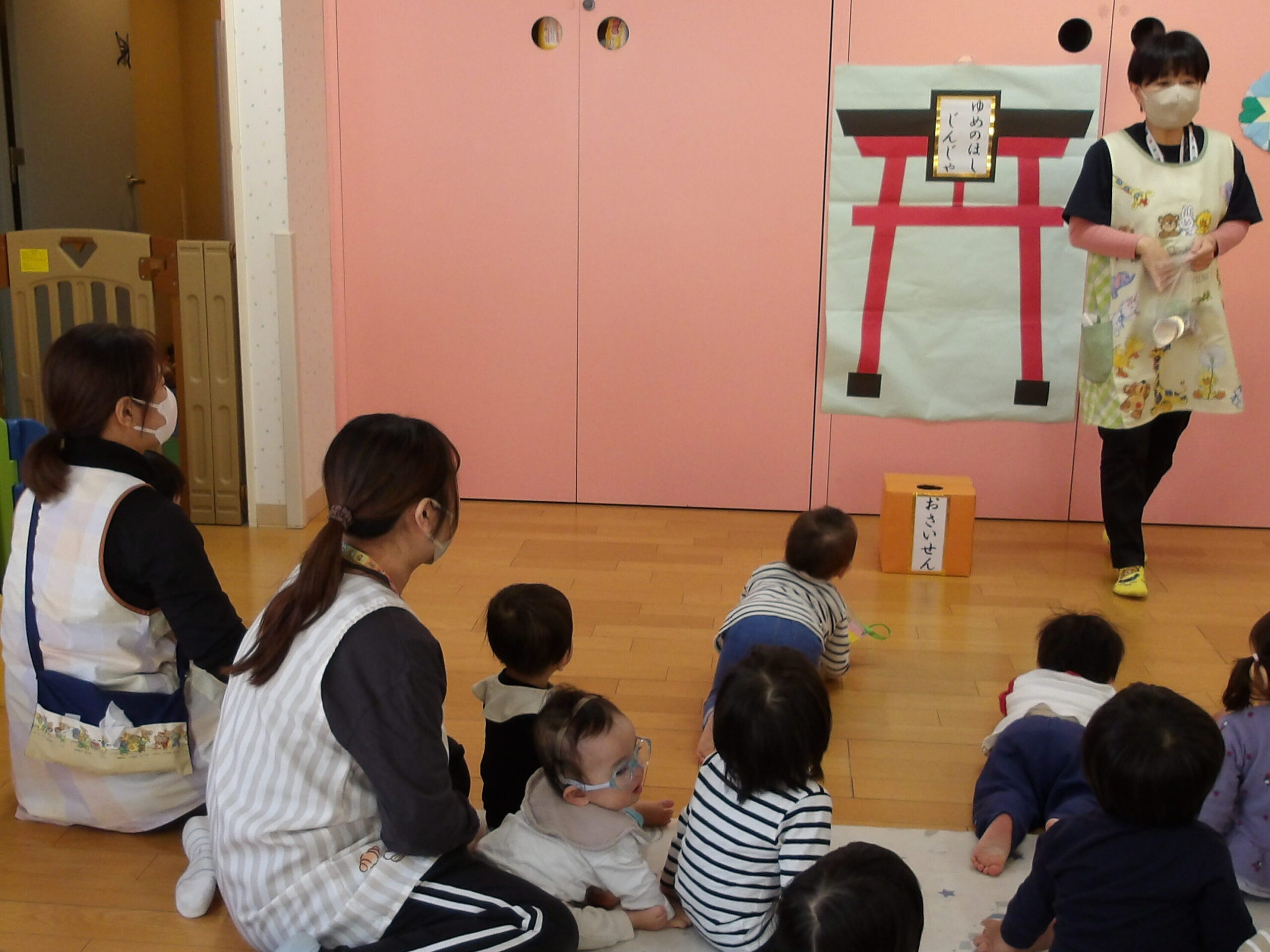 七五三集会・七五三神社参拝 2025-11-26 11月14日(金)乳児組七五三集会がありました。 七五三の由来を保育者が話すと、とても真剣に聞く姿が見られました。 手作りの神社とお賽銭を使って参拝とお参りも行いました。 11月21日(金)幼児の七五三集会がありました。 由来を聞いた後に大谷場氷川神社へ参拝に行きました。 一人ひとりお賽銭を入れてお参りをすることが出来ました。 いつもありがとうございます。 これからもみんなが健康で、すくすく大きくなりますように♪