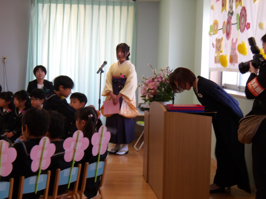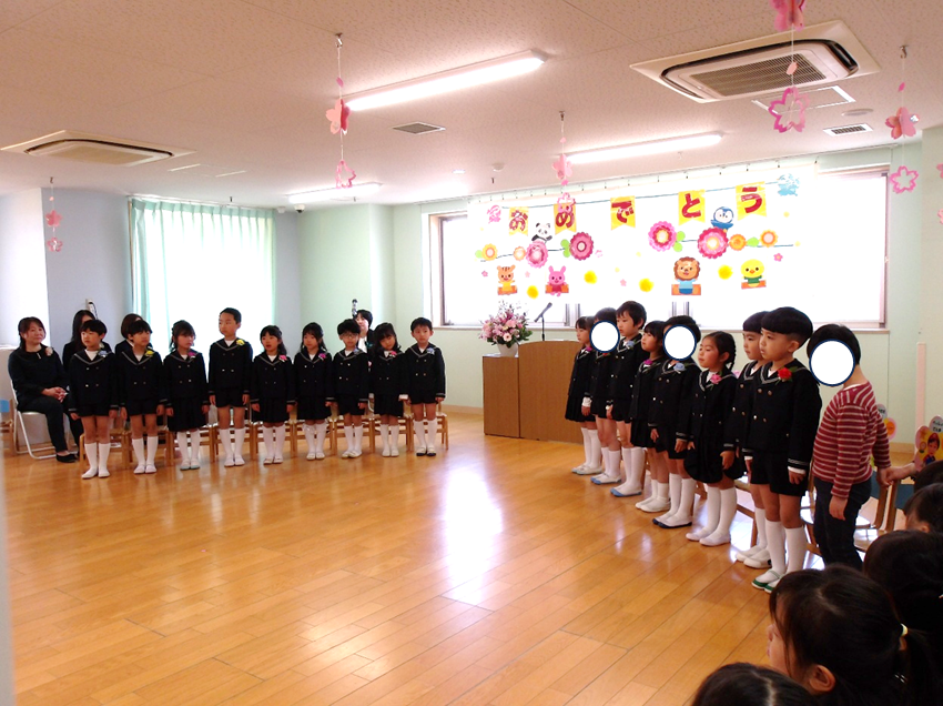 ぱんだ組のみんなも式に参列し、お別れの言葉と歌のプレゼントがありました。立派ならいおん組になれそうですね。