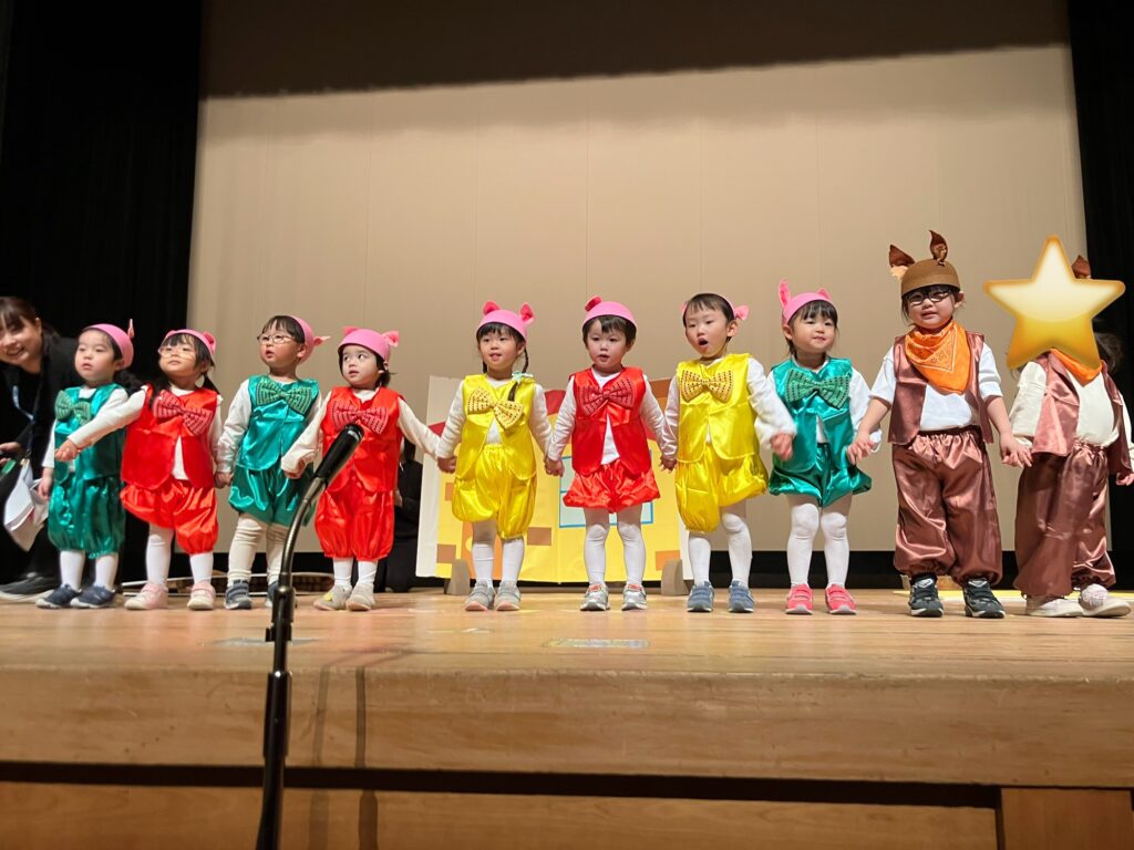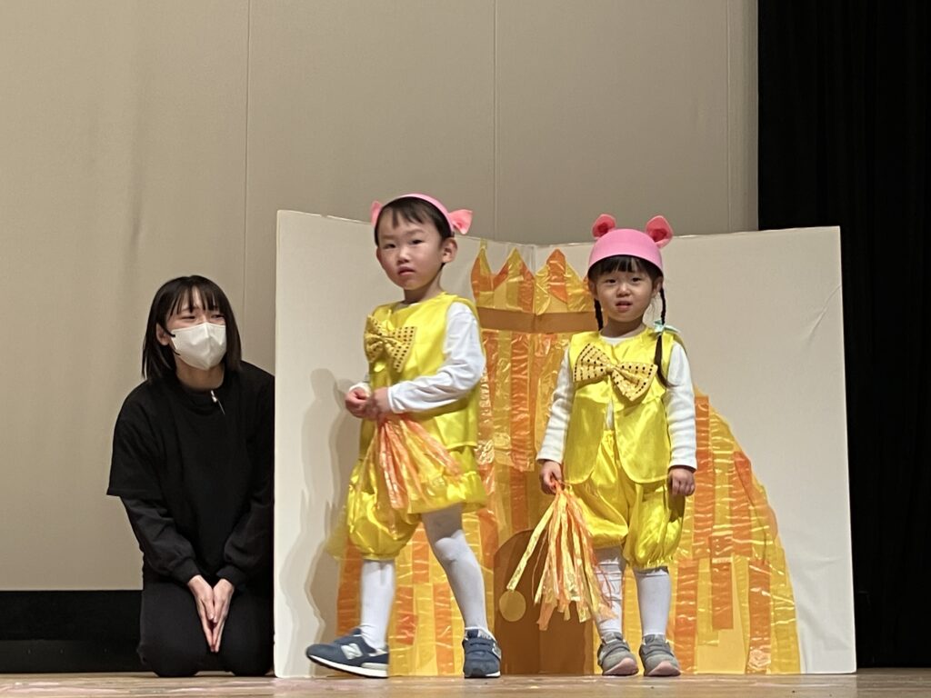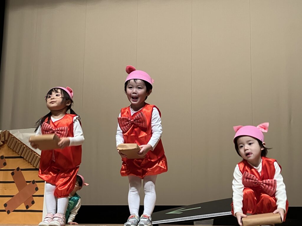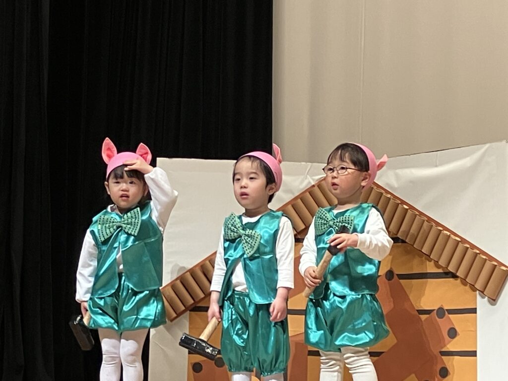 劇は「3匹のこぶた」、合唱は「コンコンくしゃんのうた」、合奏は「どんないろがすき」を