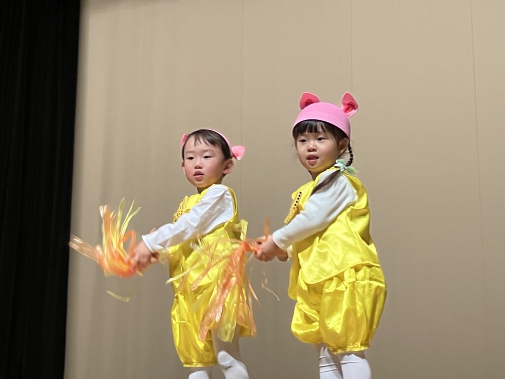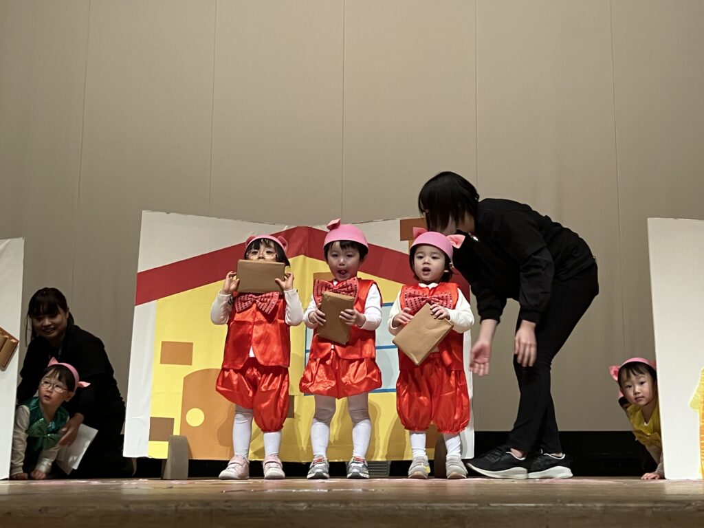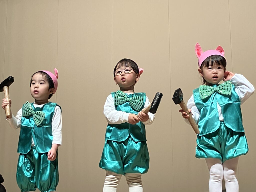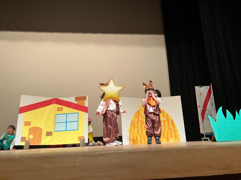 劇は「3匹のこぶた」、合唱は「コンコンくしゃんのうた」、合奏は「どんないろがすき」を