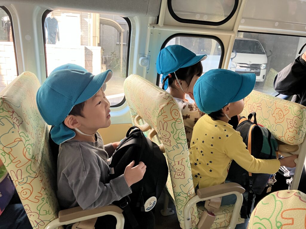 バスの中では、歌を歌ったり、シルエットクイズをしたりして過ごしました。