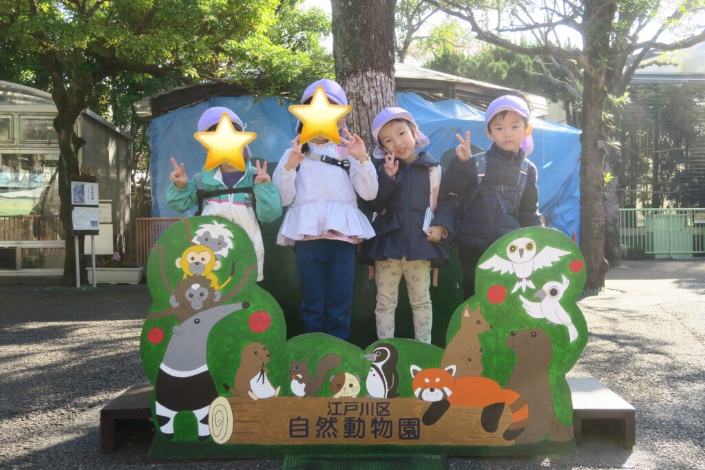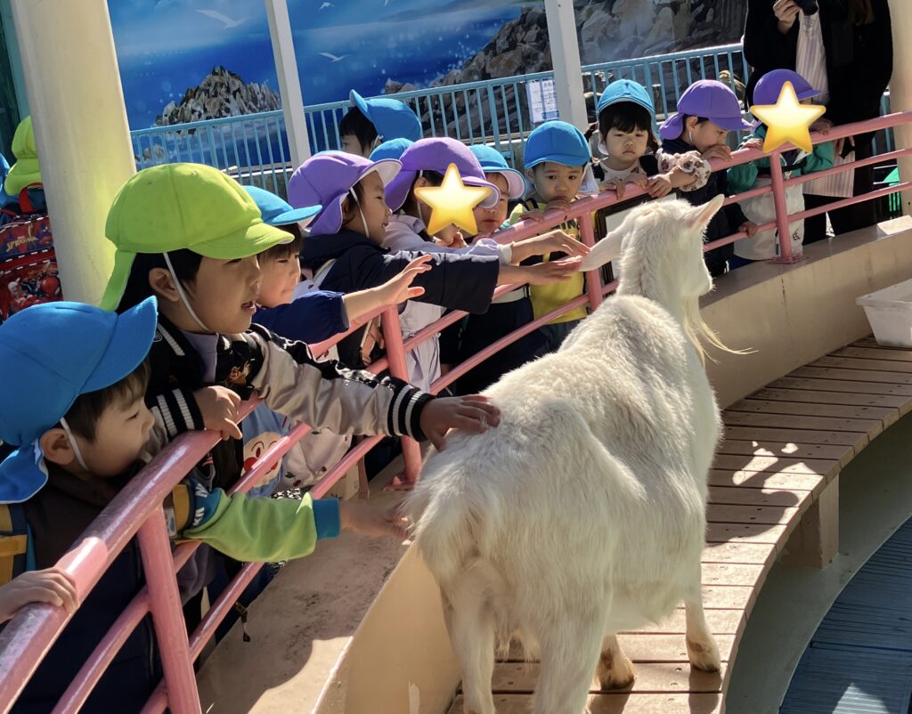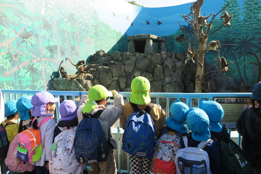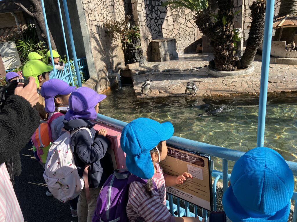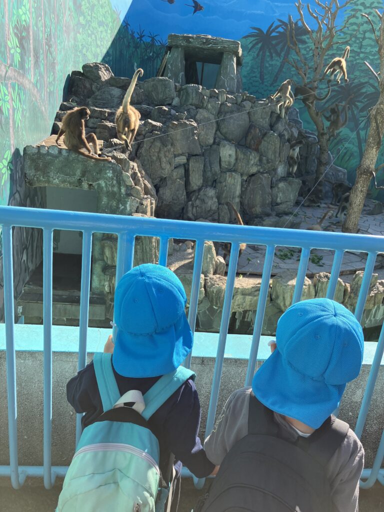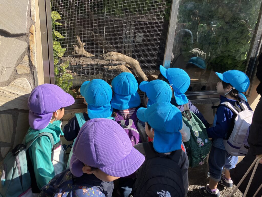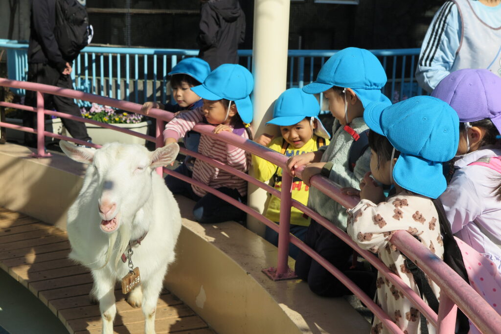 ぺんぎんやレッサーパンダ、猿やヒツジなどたくさんの動物を見ました。間近で動物を見て目をキラキラさせる子どもたち。運よくヤギに触ることもでき嬉しそうにしていました。