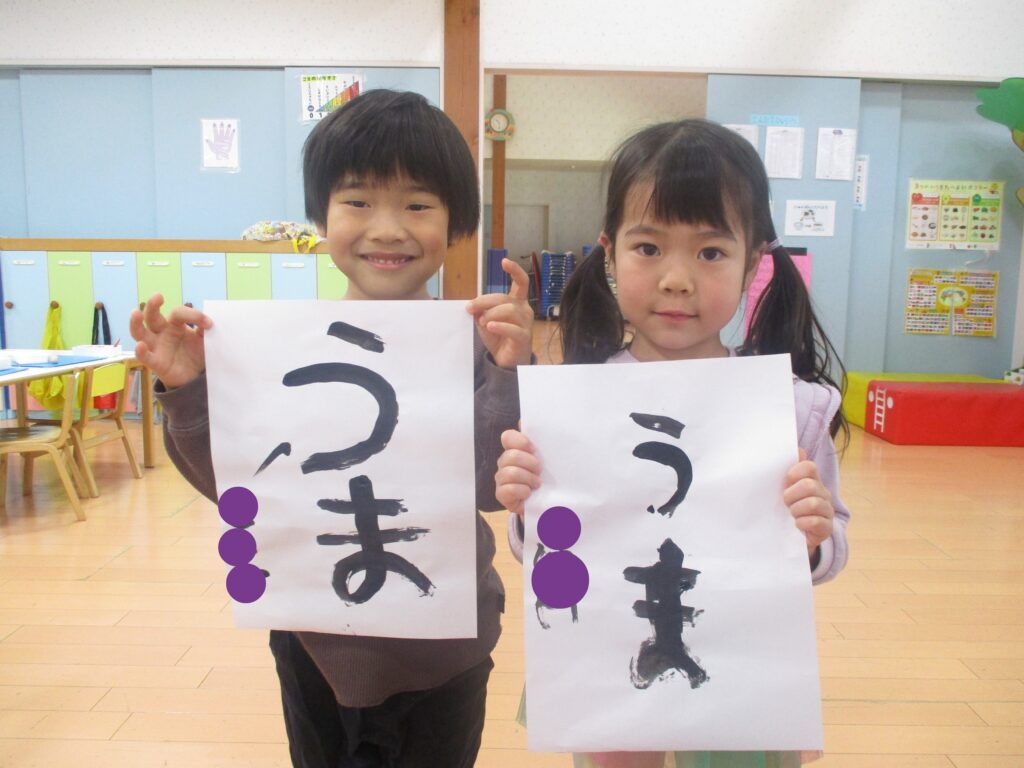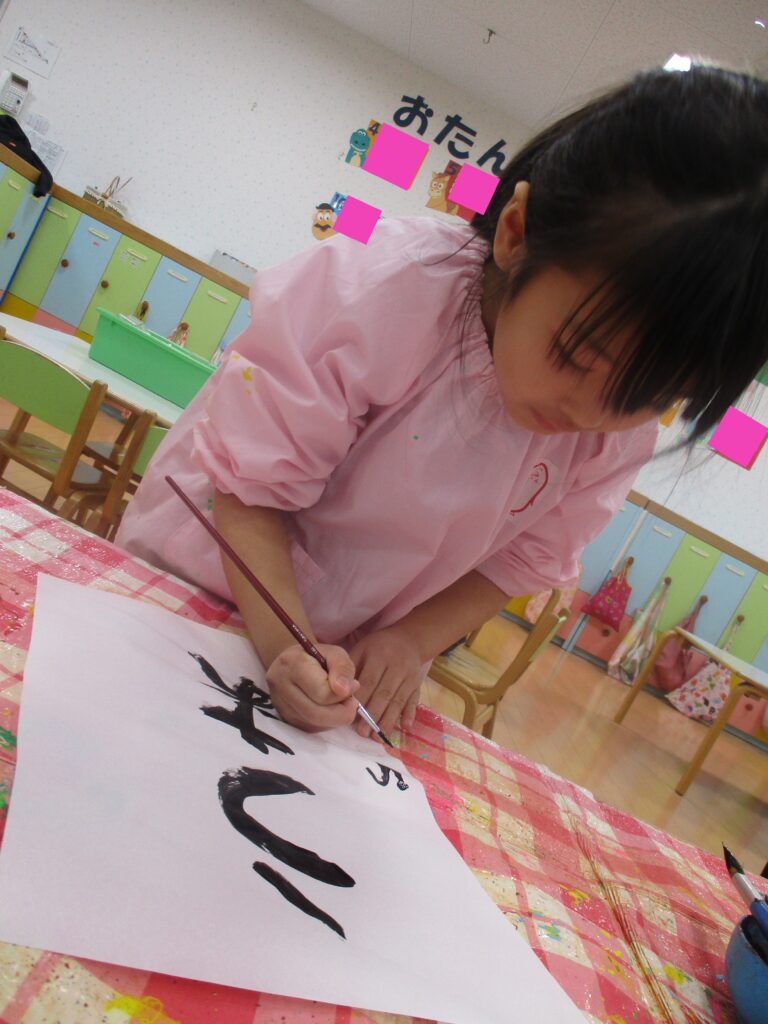 ぱんだ組さんが書初めを行いました。