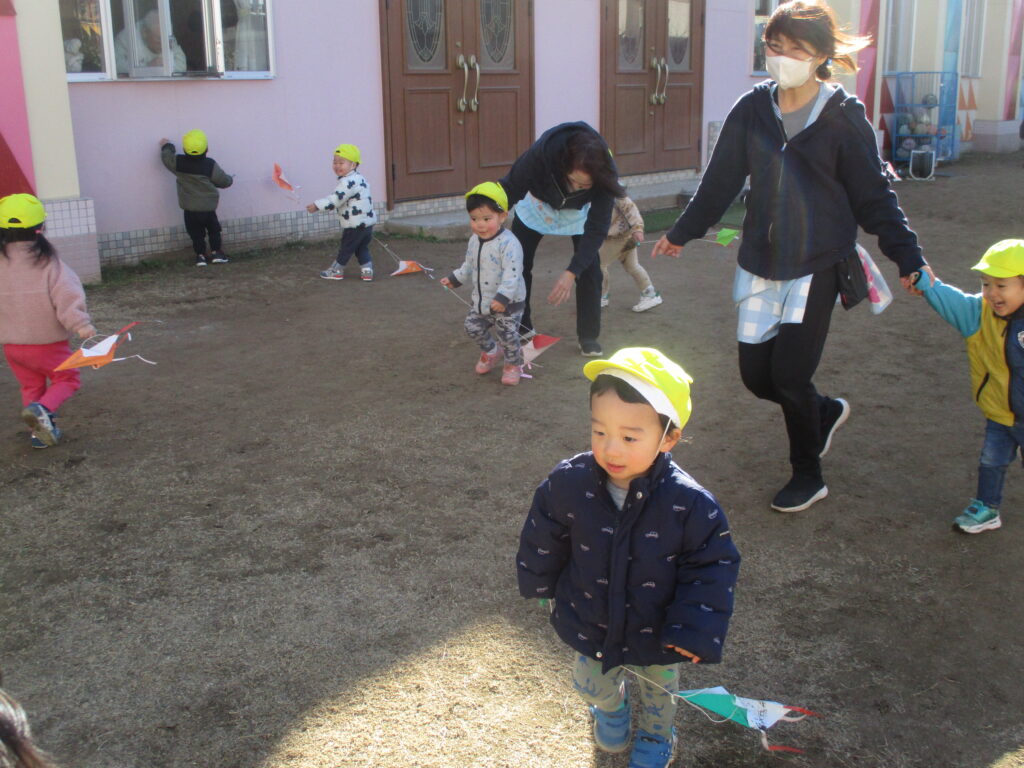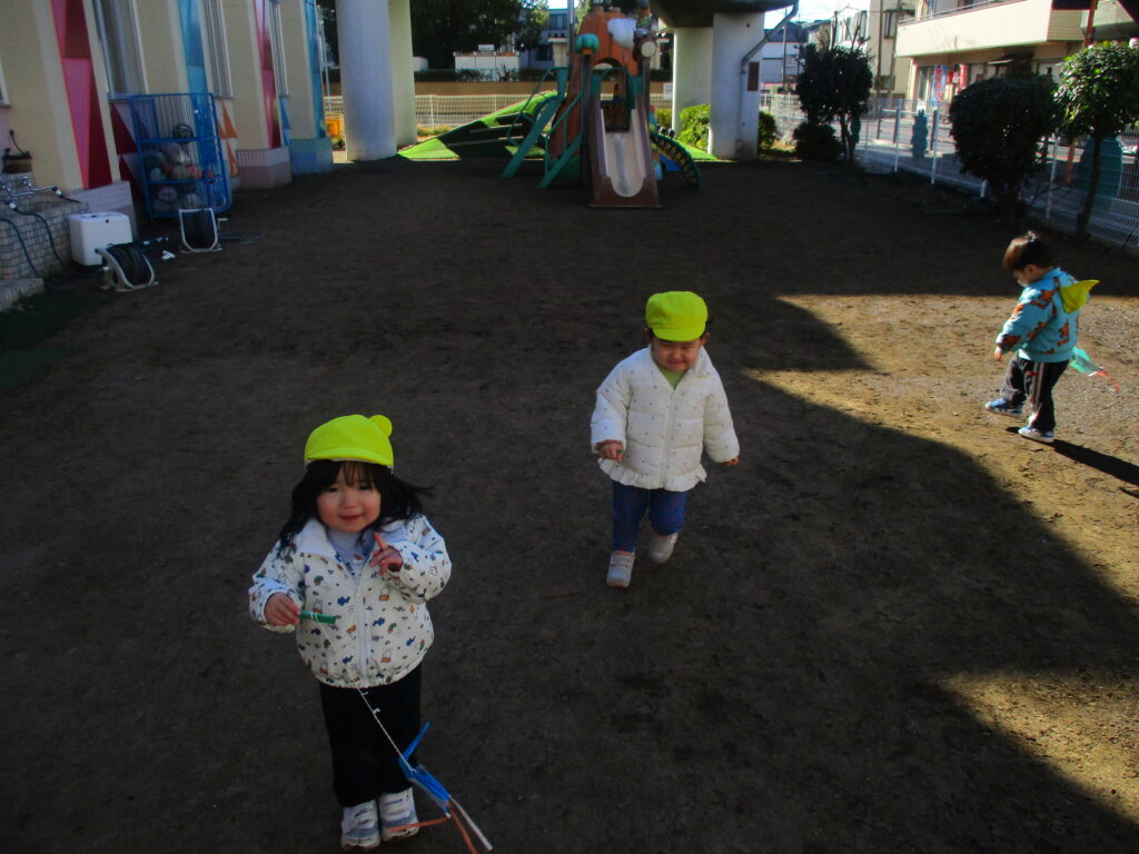 りす組さんは制作で凧を作り園庭で遊びました♪