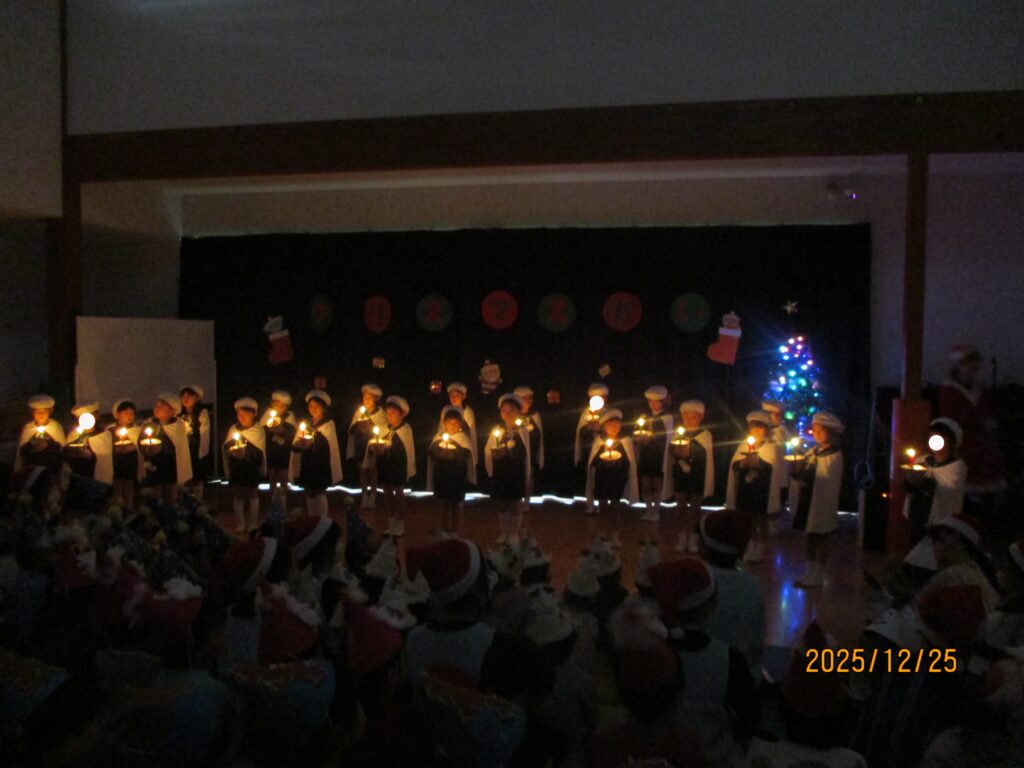 クリスマス会のオープニングにらいおん組さんによるキャンドルサービスをしました。