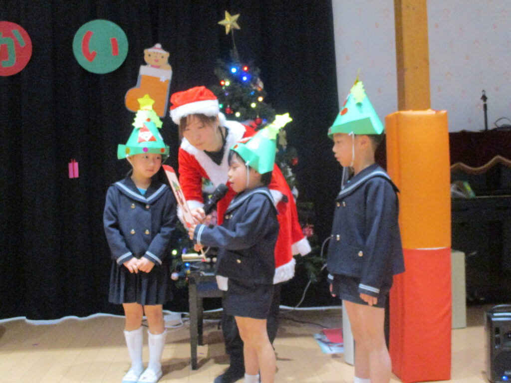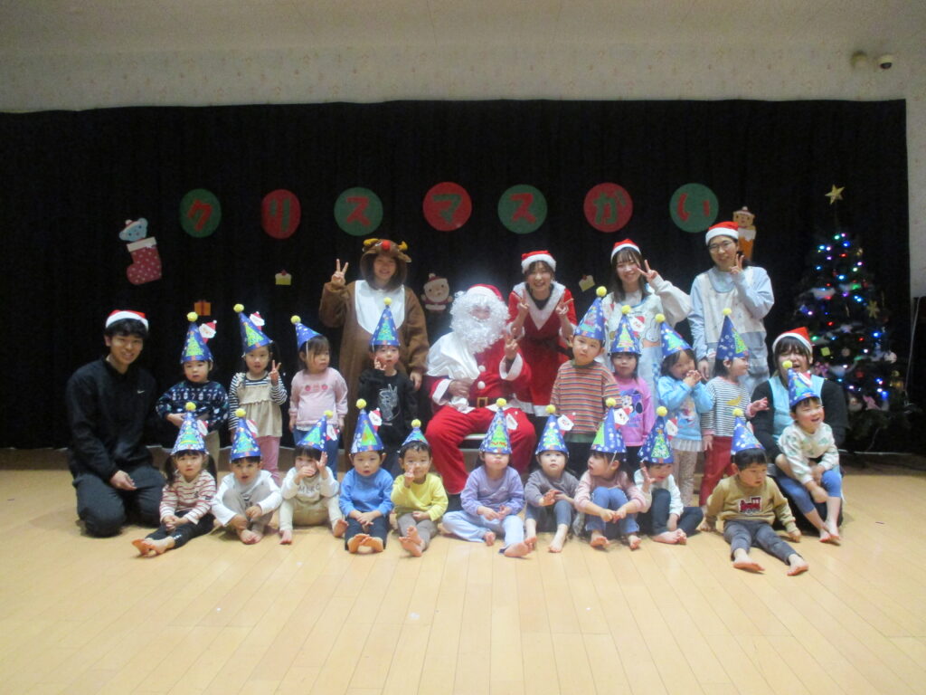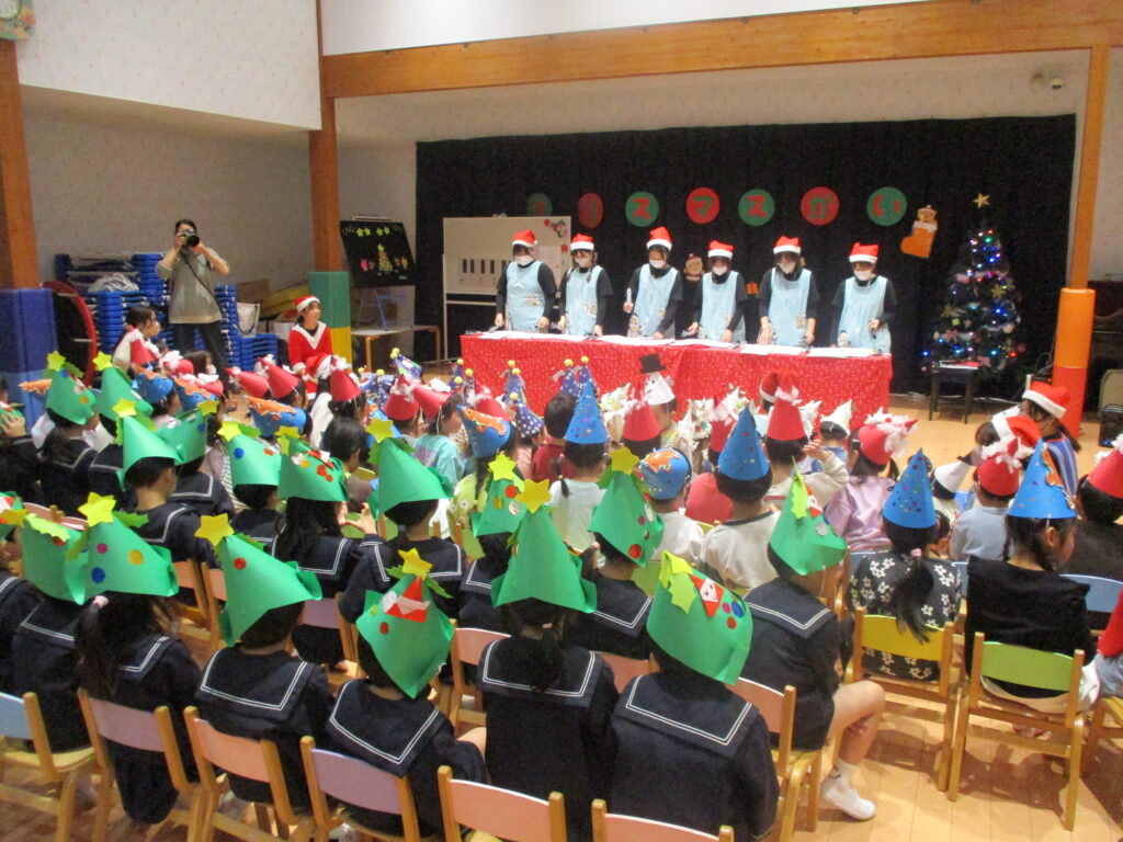 保育園のホールでクリスマス会を行いました。