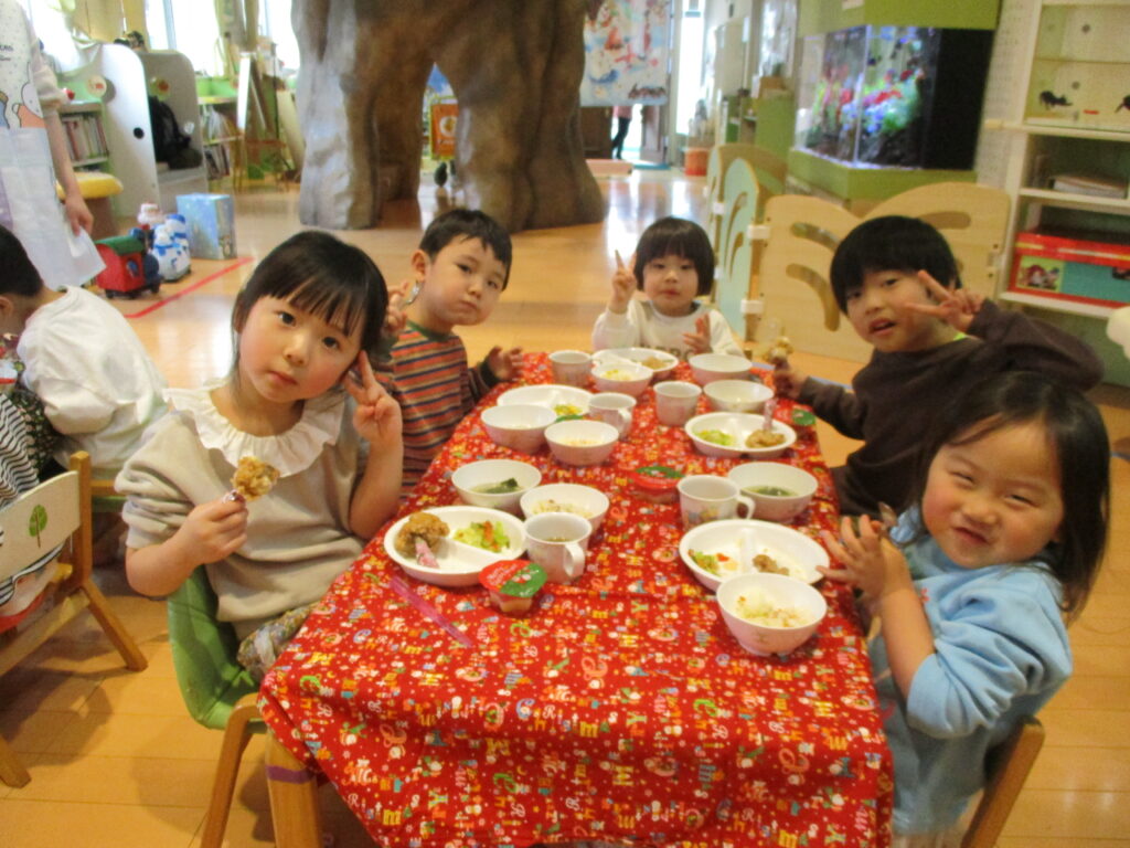 給食は異年齢クラスで会食を行いました!