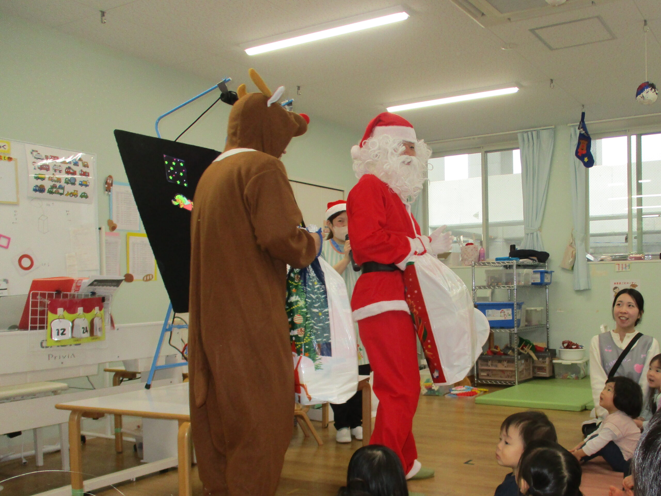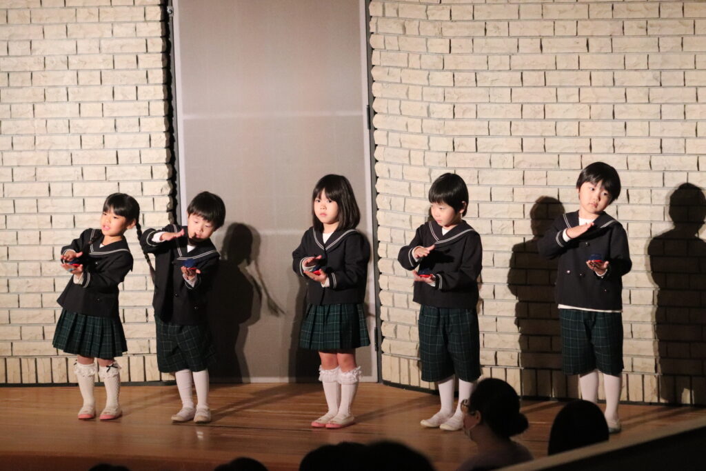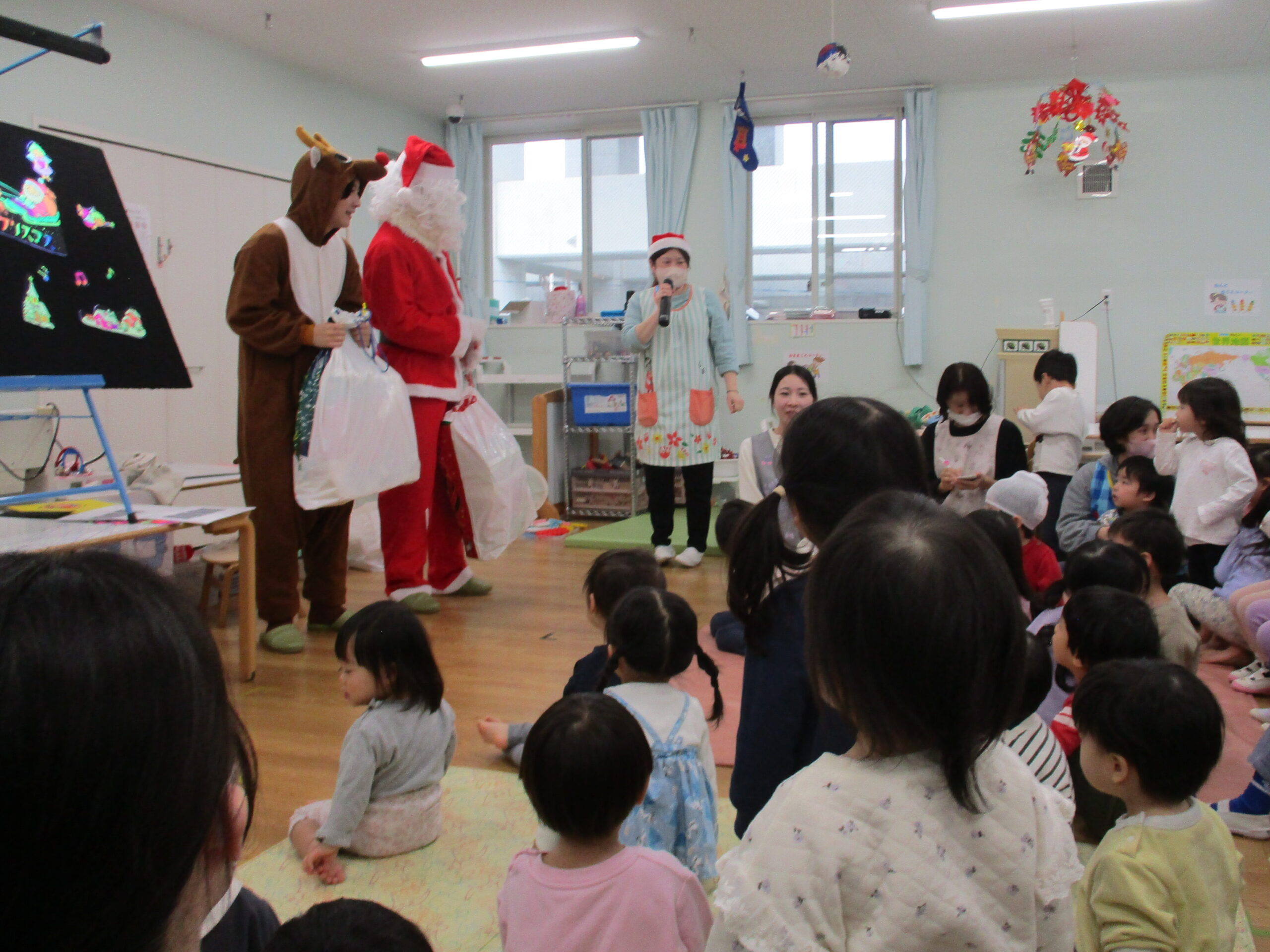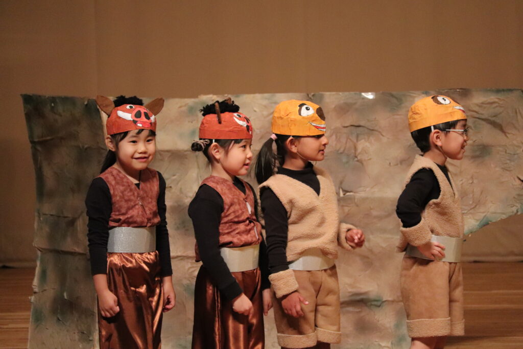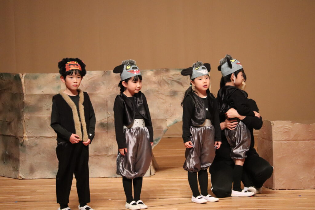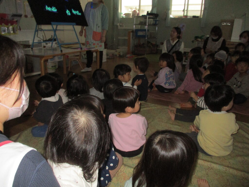 12月の様子 2025-12-26 12月は行事が盛り沢山でした。 12月5日にはお遊戯会がありました。 ひよこ組は初めてのお遊戯会に緊張気味でしたが楽しんで参加していました。 らいおん組は保育園生活最後のお遊戯会。それぞれの役を立派に演じ、 素晴らしいライオンキングとなりました。 12月24日にはクリスマス会がありました。 ブラックシアターを見ながら「赤鼻のトナカイ」や「ジングルベル」を歌っていると サンタさんがやってきました。 サンタさんからプレゼントを受け取ると嬉しそうにしていました。