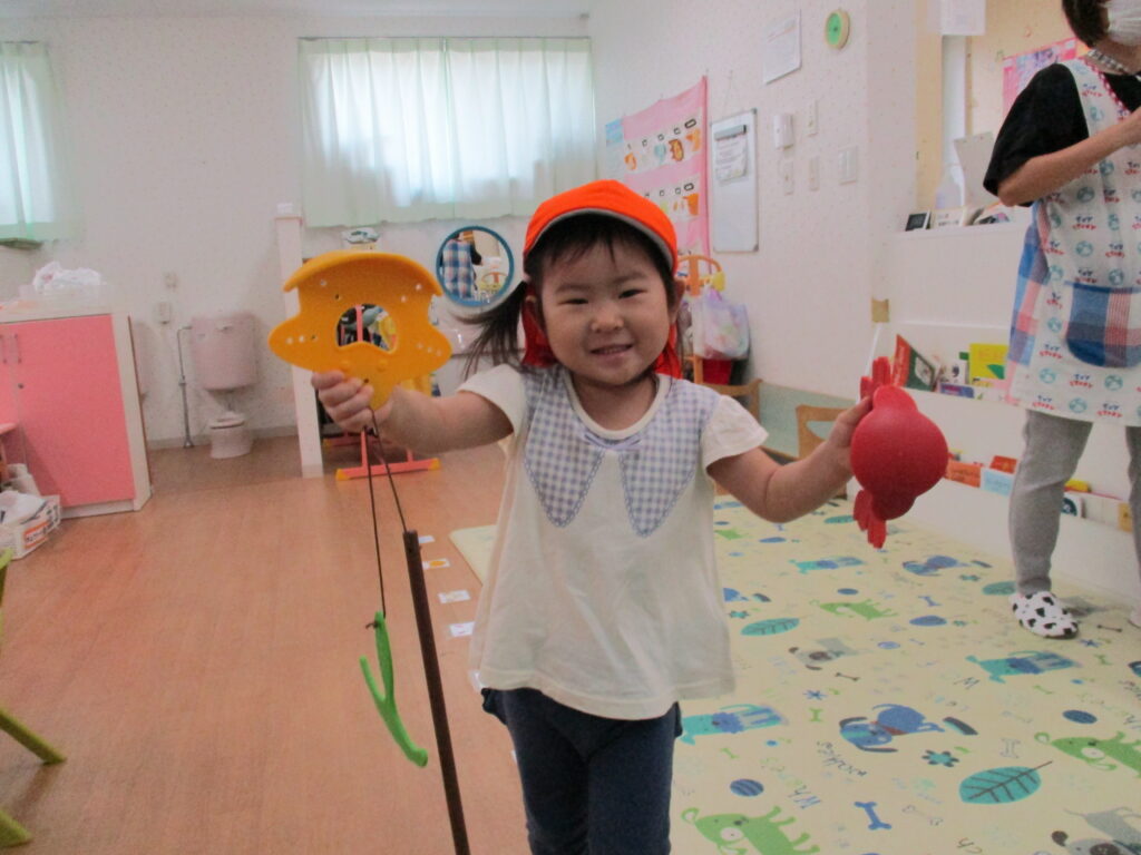 そして、親子競技に向けて魚釣りの練習も行いました。