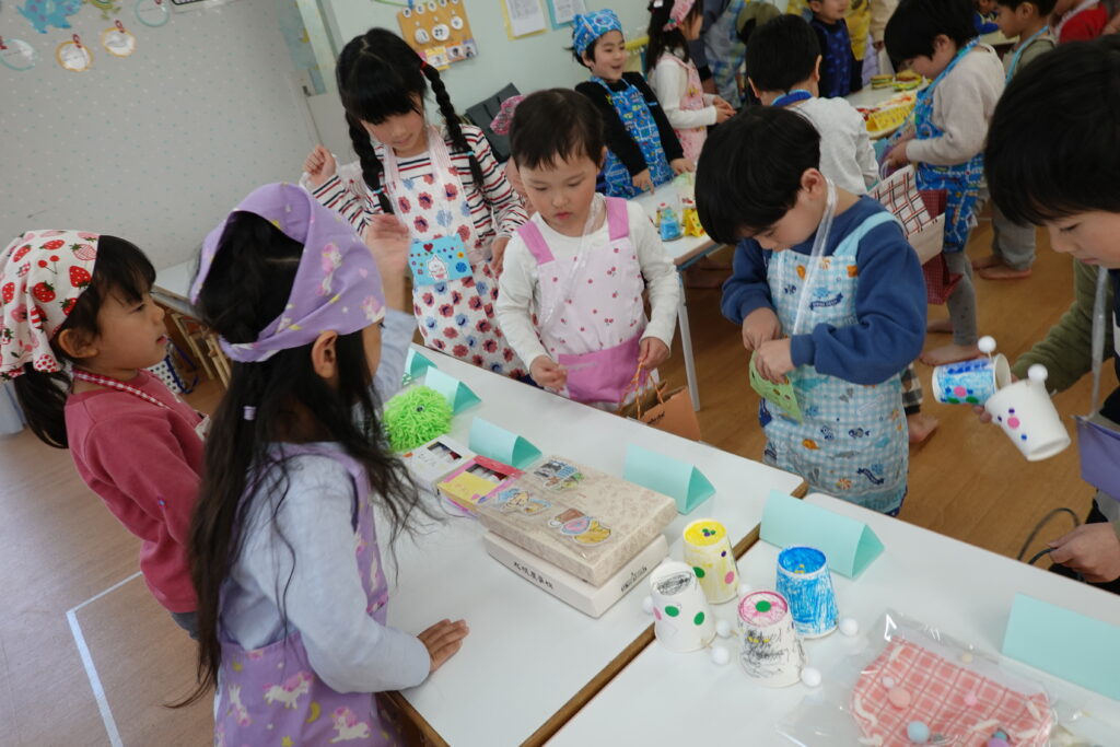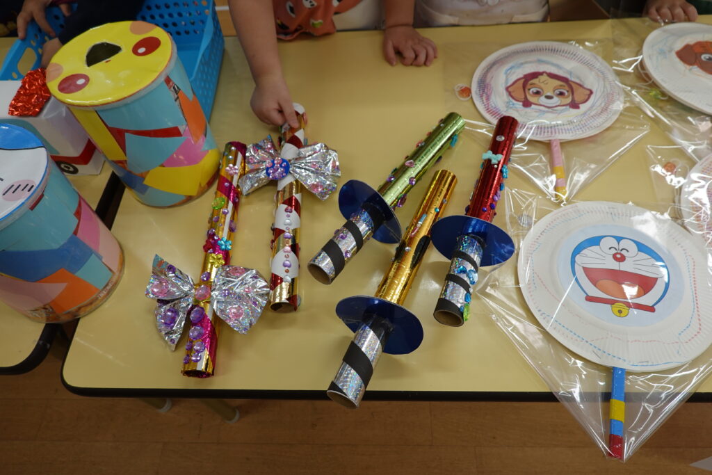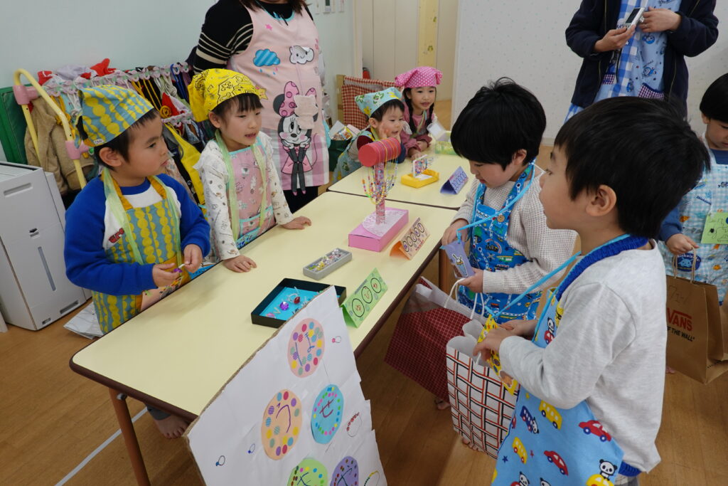 幼児組さんは3つのグループに分かれてお店を出しました。1つ目はアクセサリー屋さん。素敵なアクセサリーが並びます✨